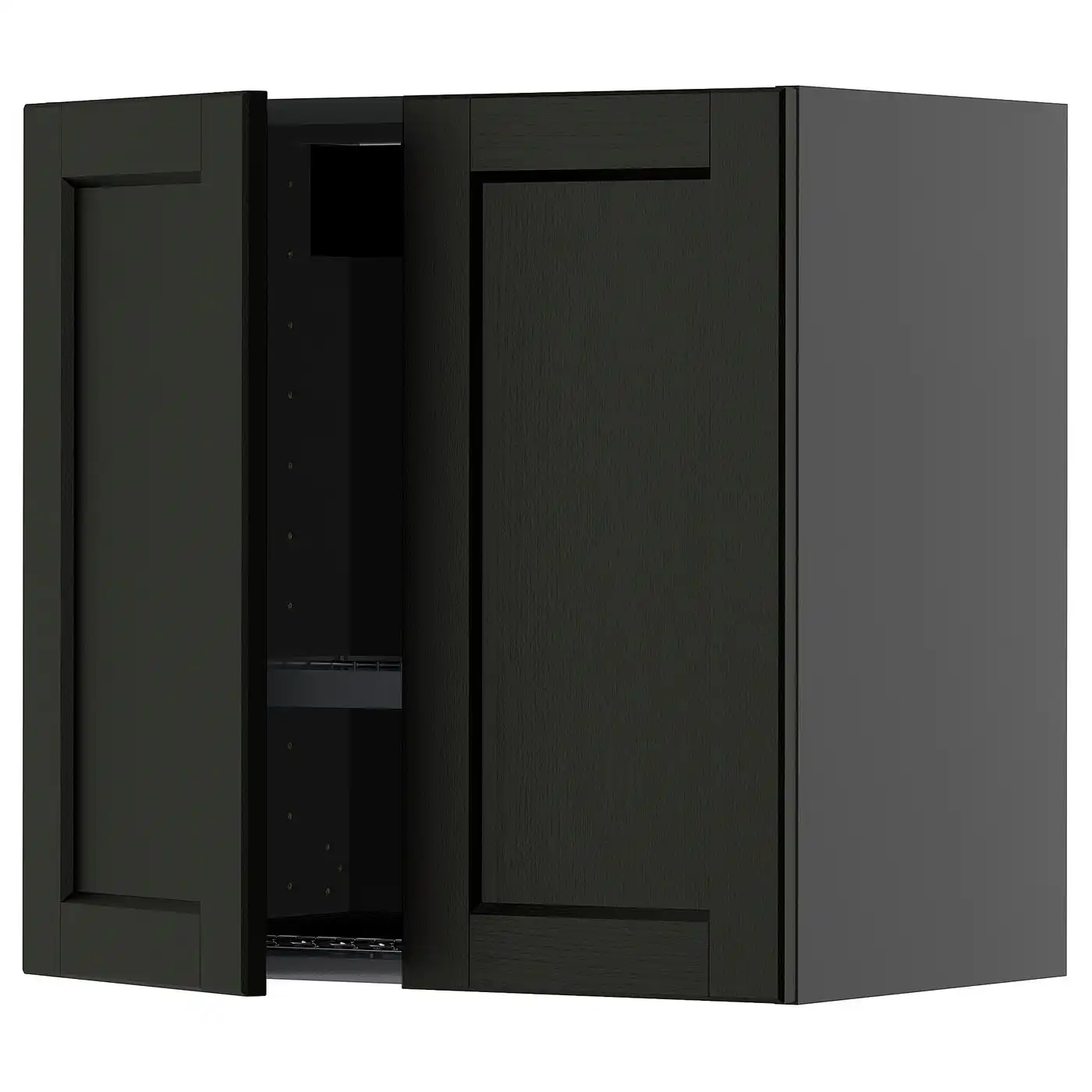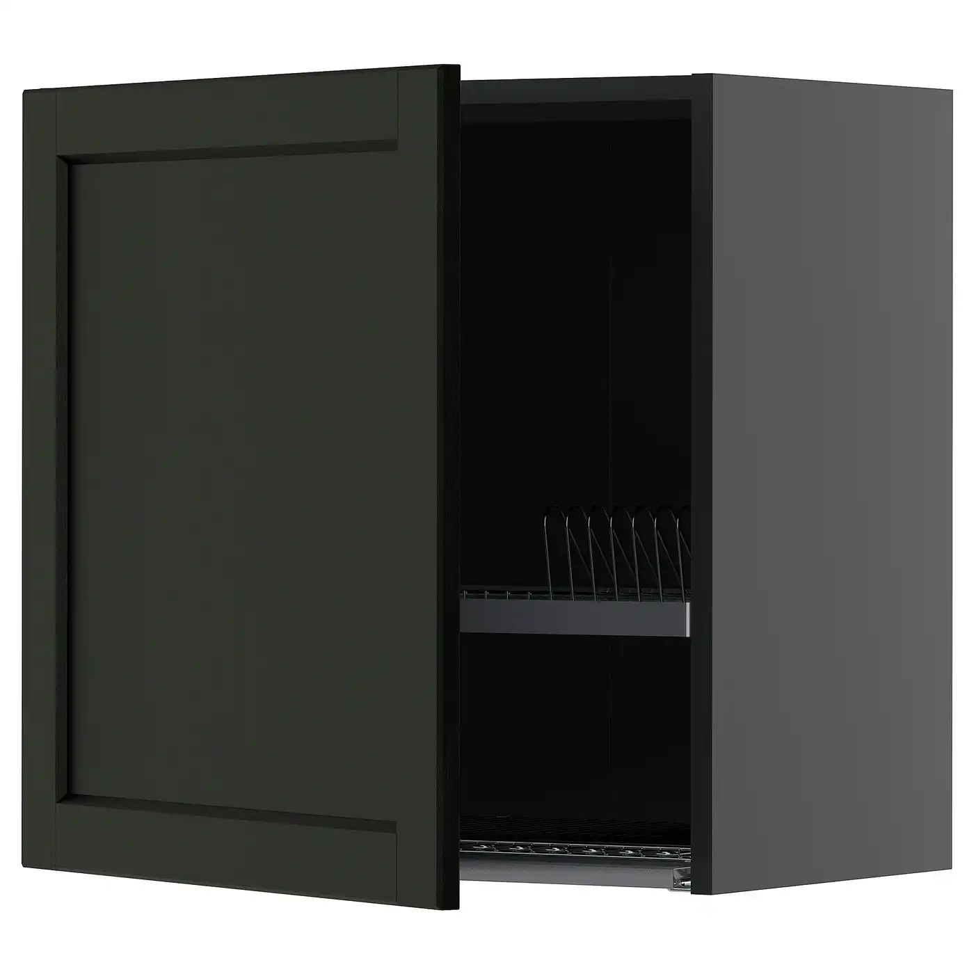 METOD Wall cabinet with dish drainer - black/Lerhyttan black stained 60x60 cm