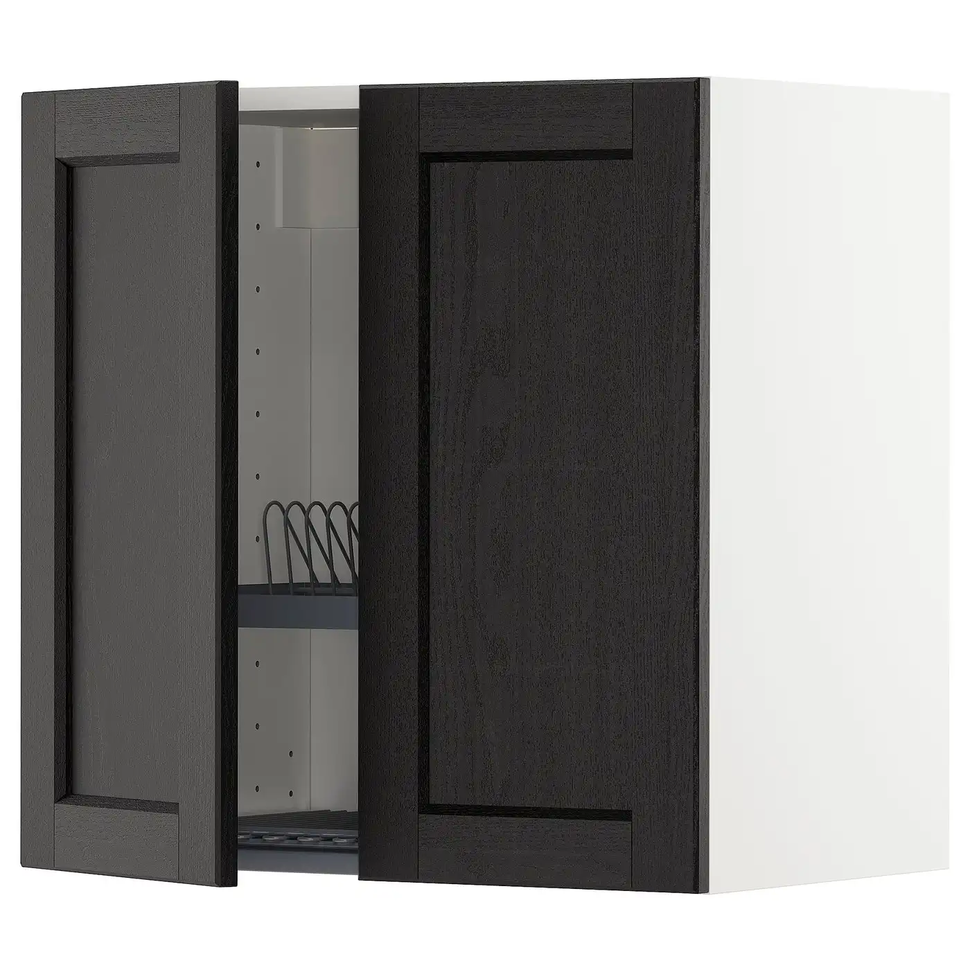 METOD Wall cabinet w dish drainer/2 doors - white/Lerhyttan black stained 60x60 cm