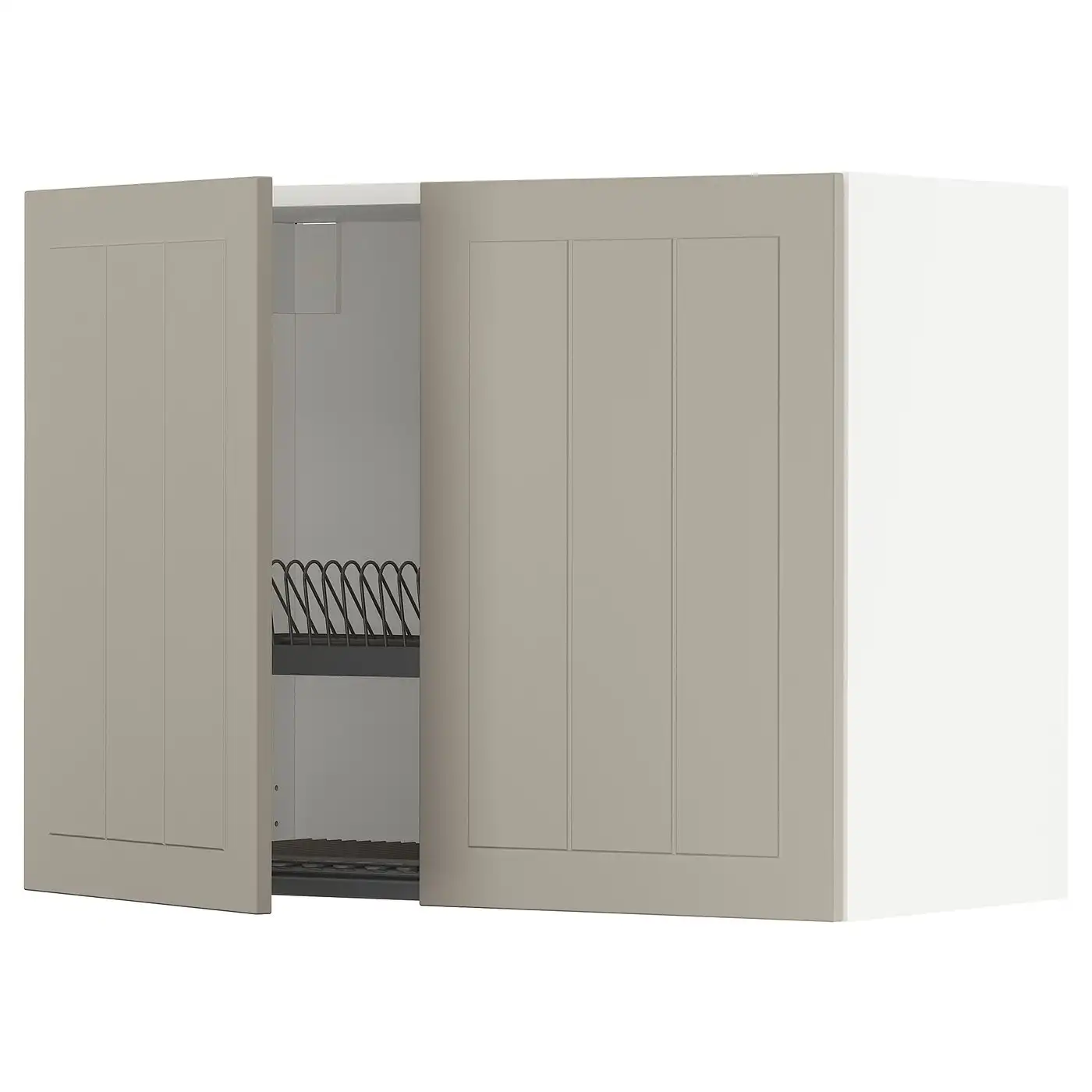 IKEA METOD Wall cabinet with dish drainer 80x60 cm STENSUND beige/white