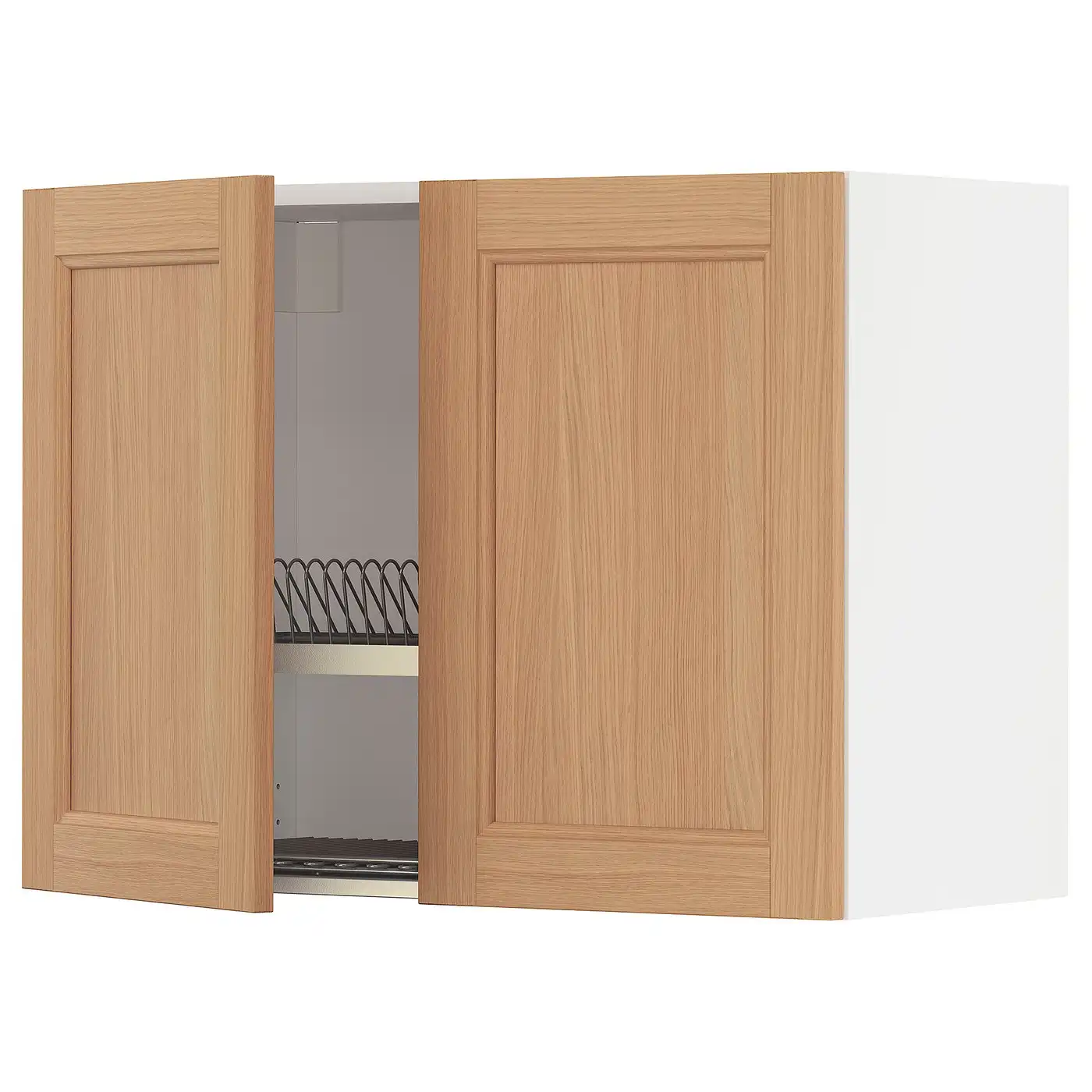 IKEA METOD Wall cabinet with dish drainer 80x60 cm VEDHAMN oak/white