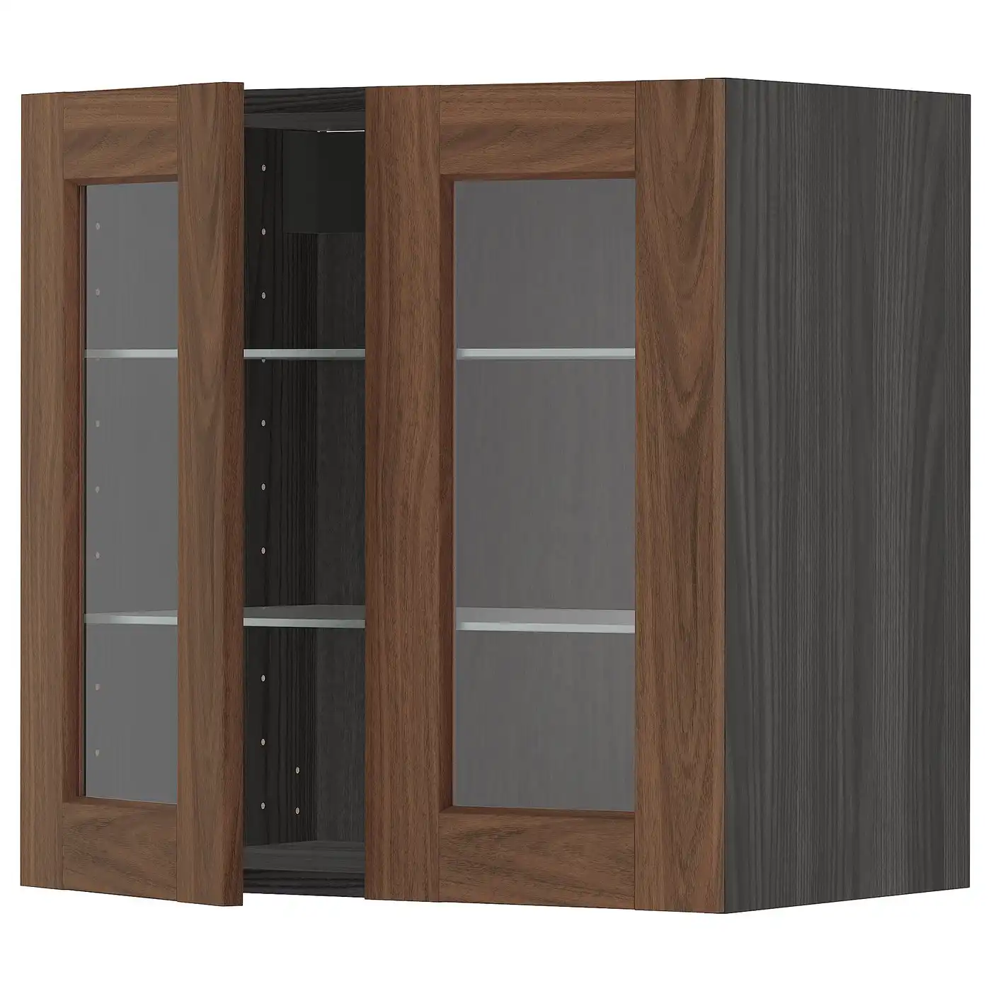 METOD Wall cabinet w shelves/2 glass drs - black Enköping/brown walnut effect 60x60 cm — Price History & Tracker | DeserTracker