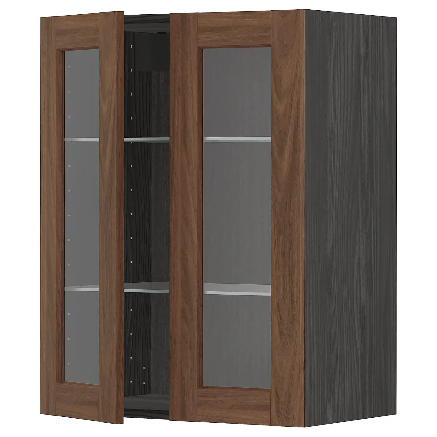 METOD Wall cabinet w shelves/2 glass drs - black Enköping/brown walnut effect 60x80 cm