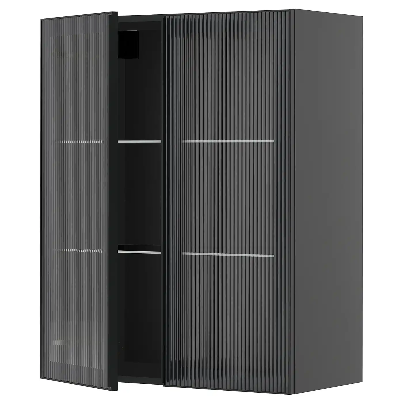 METOD Wall cabinet w shelves/2 glass drs - black-grey/Hejsta anthracite reeded glass 80x100 cm — Price History & Tracker | DeserTracker