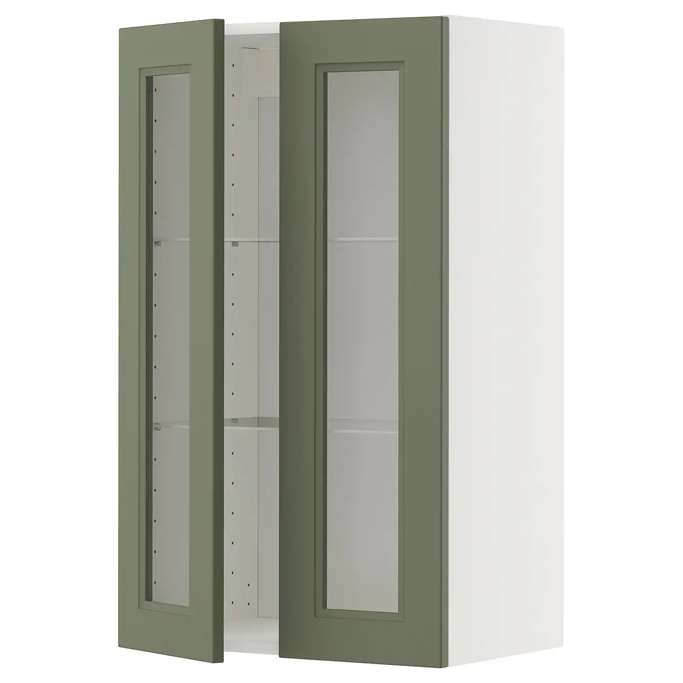 METOD Wall cabinet w shelves/2 glass drs - white/Axstad grey-green 60x100 cm