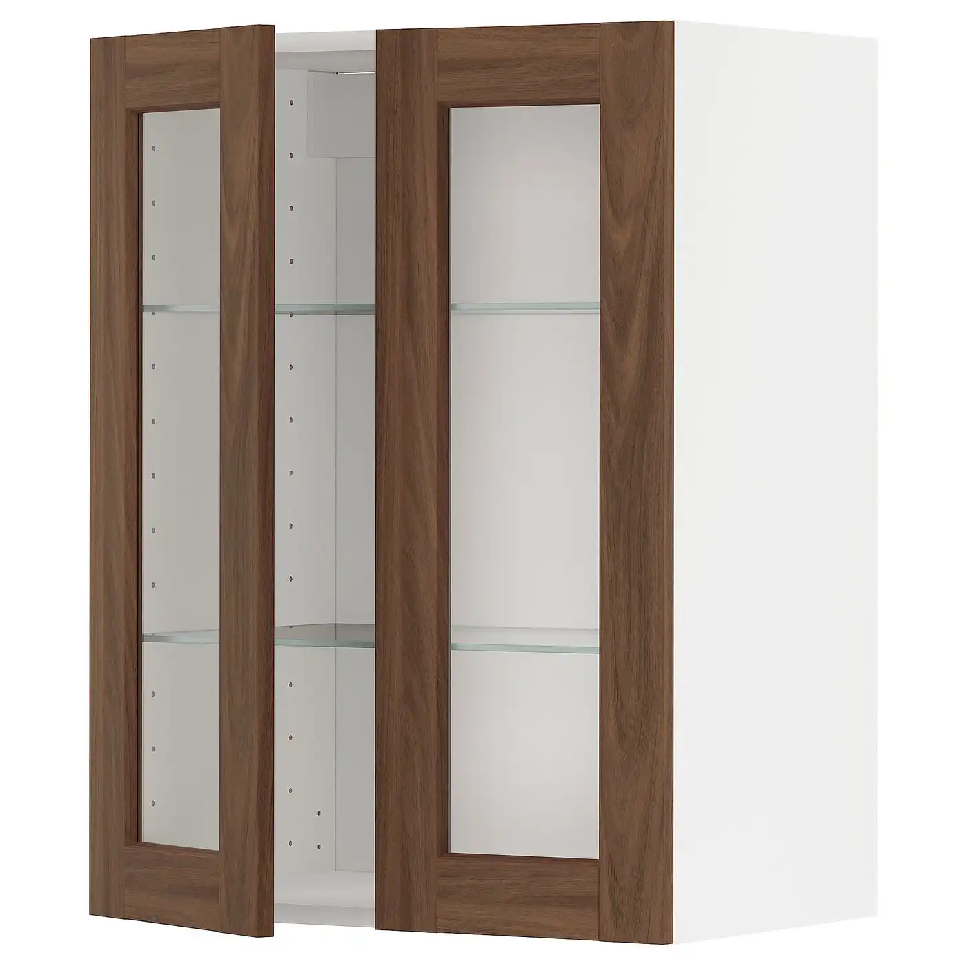 METOD Wall cabinet w shelves/2 glass drs - white Enköping/brown walnut effect 60x80 cm — Price History & Tracker | DeserTracker