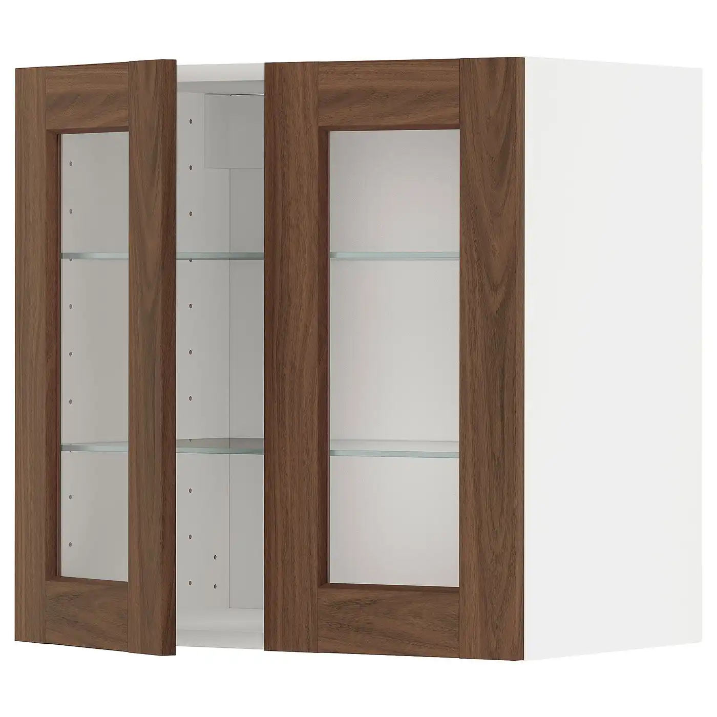 METOD Wall cabinet w shelves/2 glass drs - white Enköping/brown walnut effect 60x60 cm — Price History & Tracker | DeserTracker