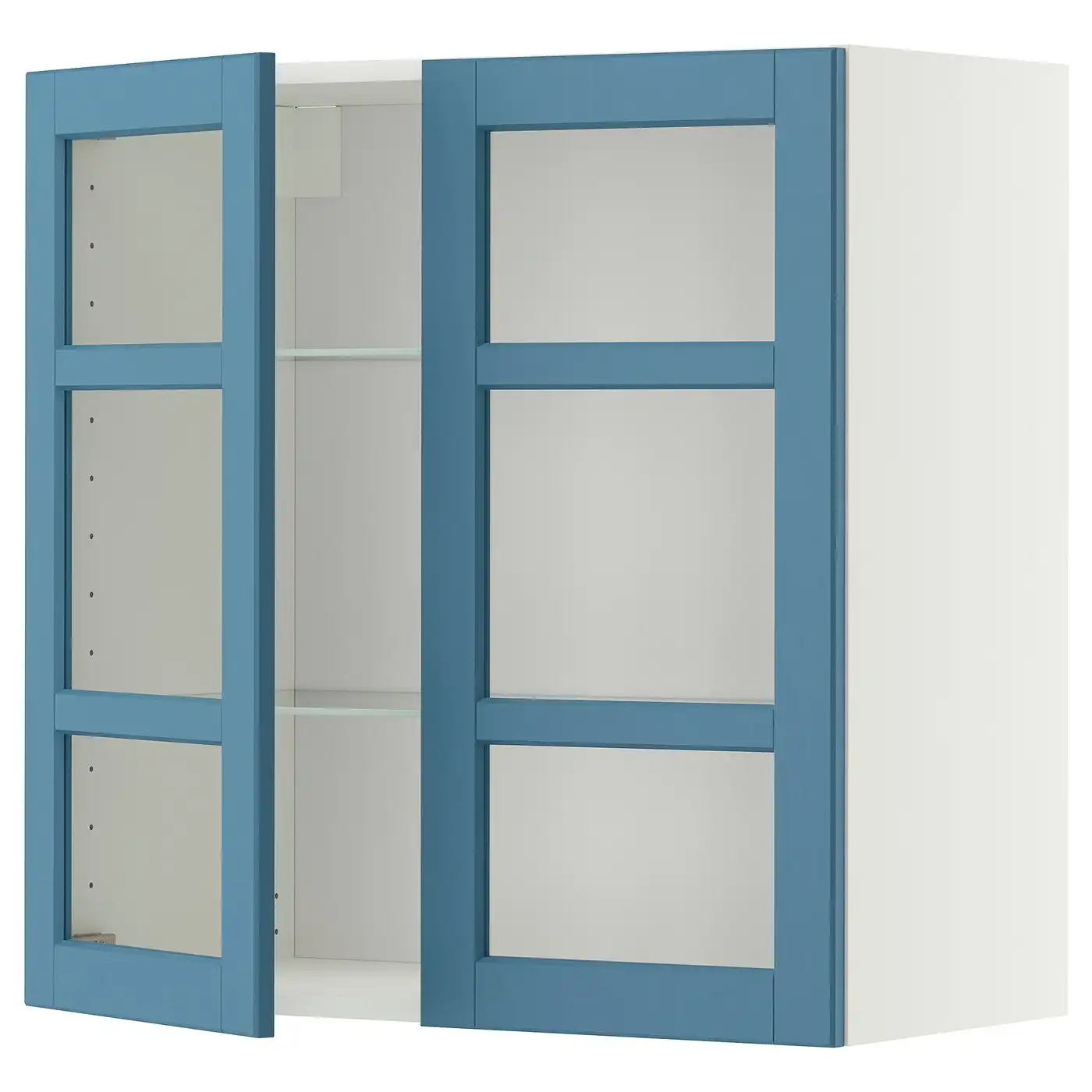 METOD Wall cabinet w shelves/2 glass drs - white/Lerhyttan blue 80x80 cm