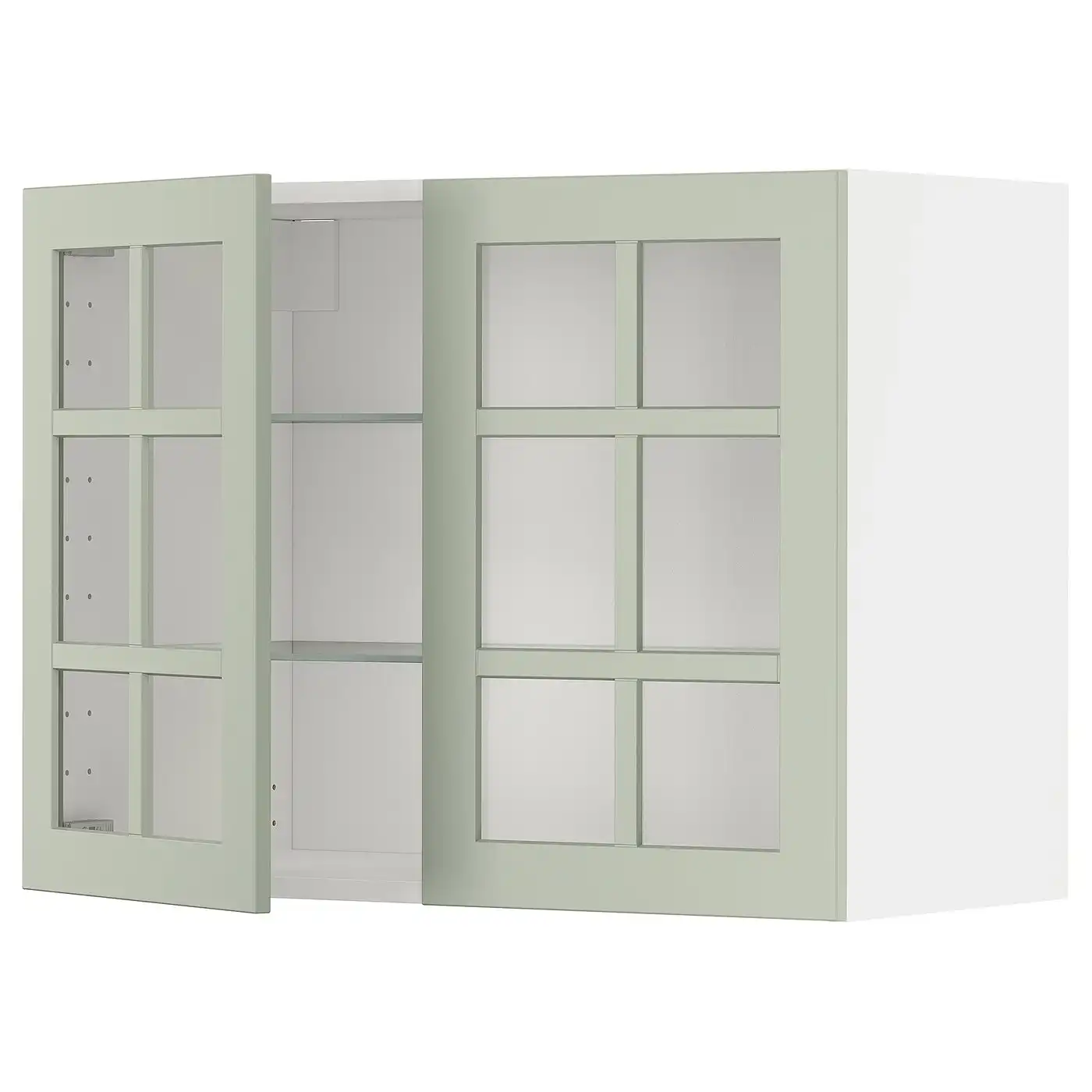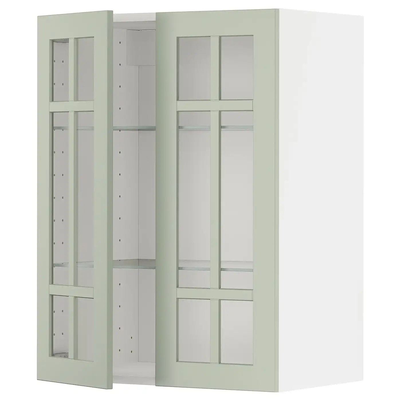 METOD Wall cabinet w shelves/2 glass drs - white/Stensund light green 60x80 cm