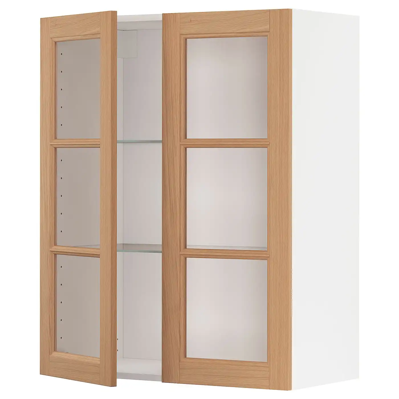 METOD Wall cabinet w shelves/2 glass drs - white/Vedhamn oak 80x100 cm