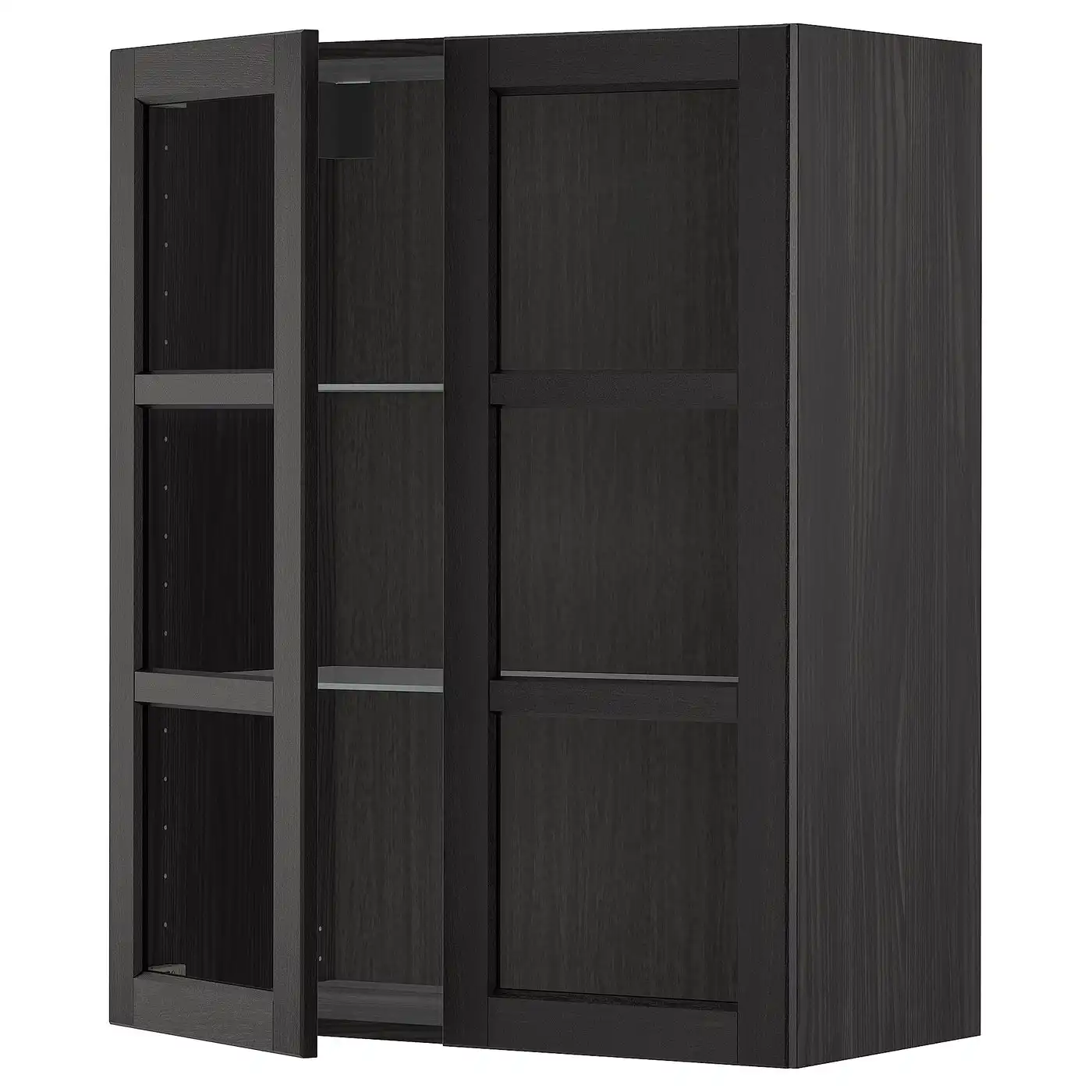 METOD Wall cabinet w shelves/2 glass drs - black/Lerhyttan black stained 80x100 cm