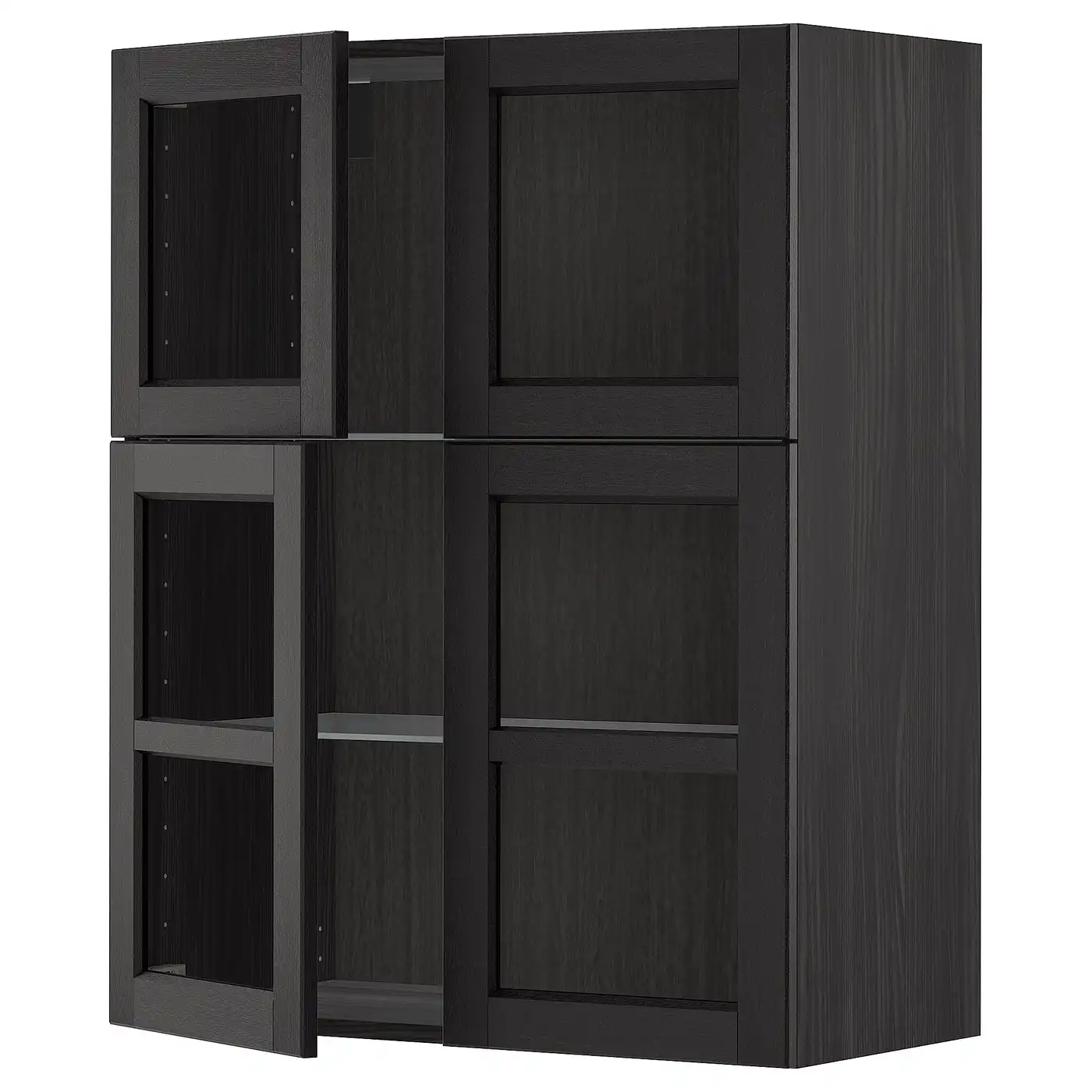 METOD Wall cabinet w shelves/4 glass drs - black/Lerhyttan black stained 80x100 cm