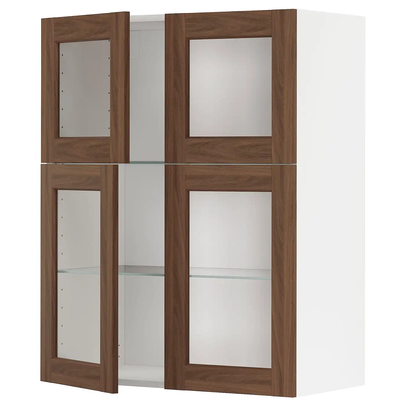 METOD Wall cabinet w shelves/4 glass drs - white Enköping/brown walnut effect 80x100 cm