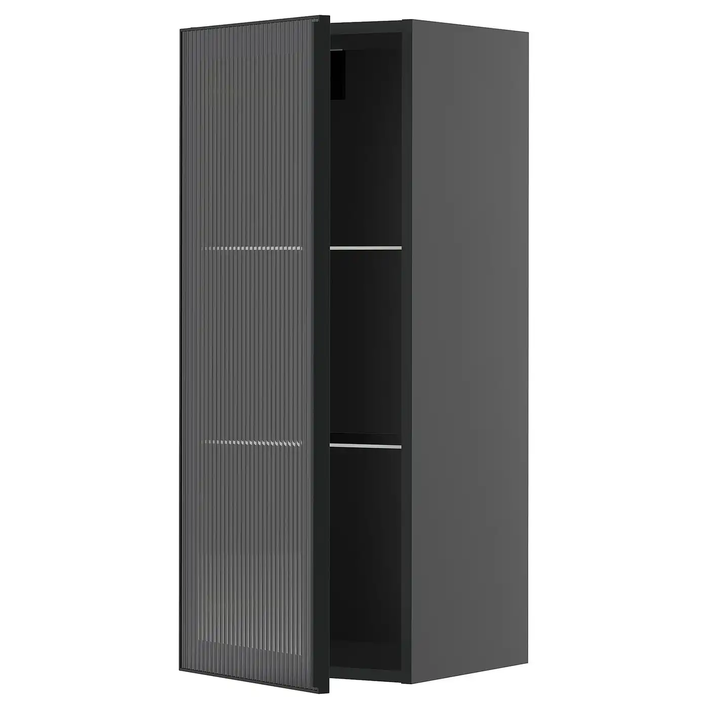 IKEA METOD Wall cabinet with shelves and glass door 40x100 cm HEJSTA black-grey/anthracite reeded glass