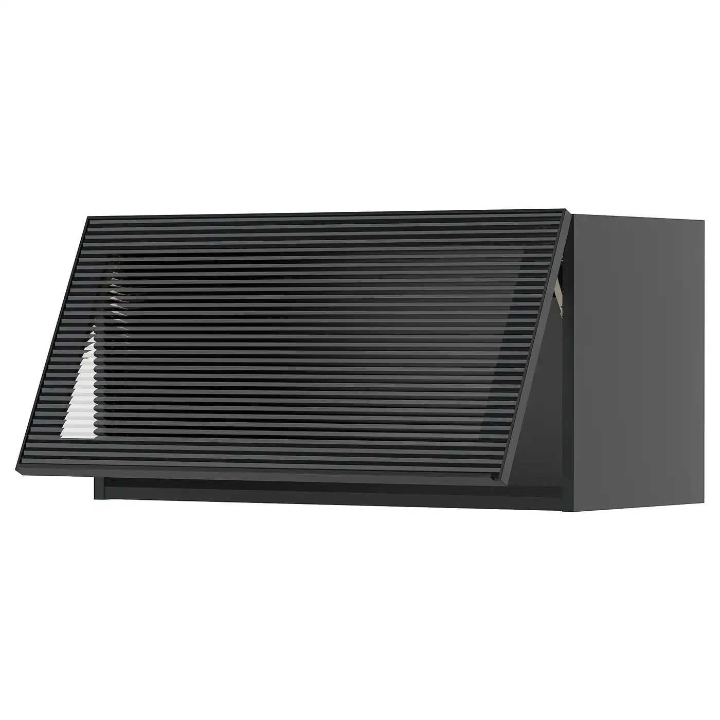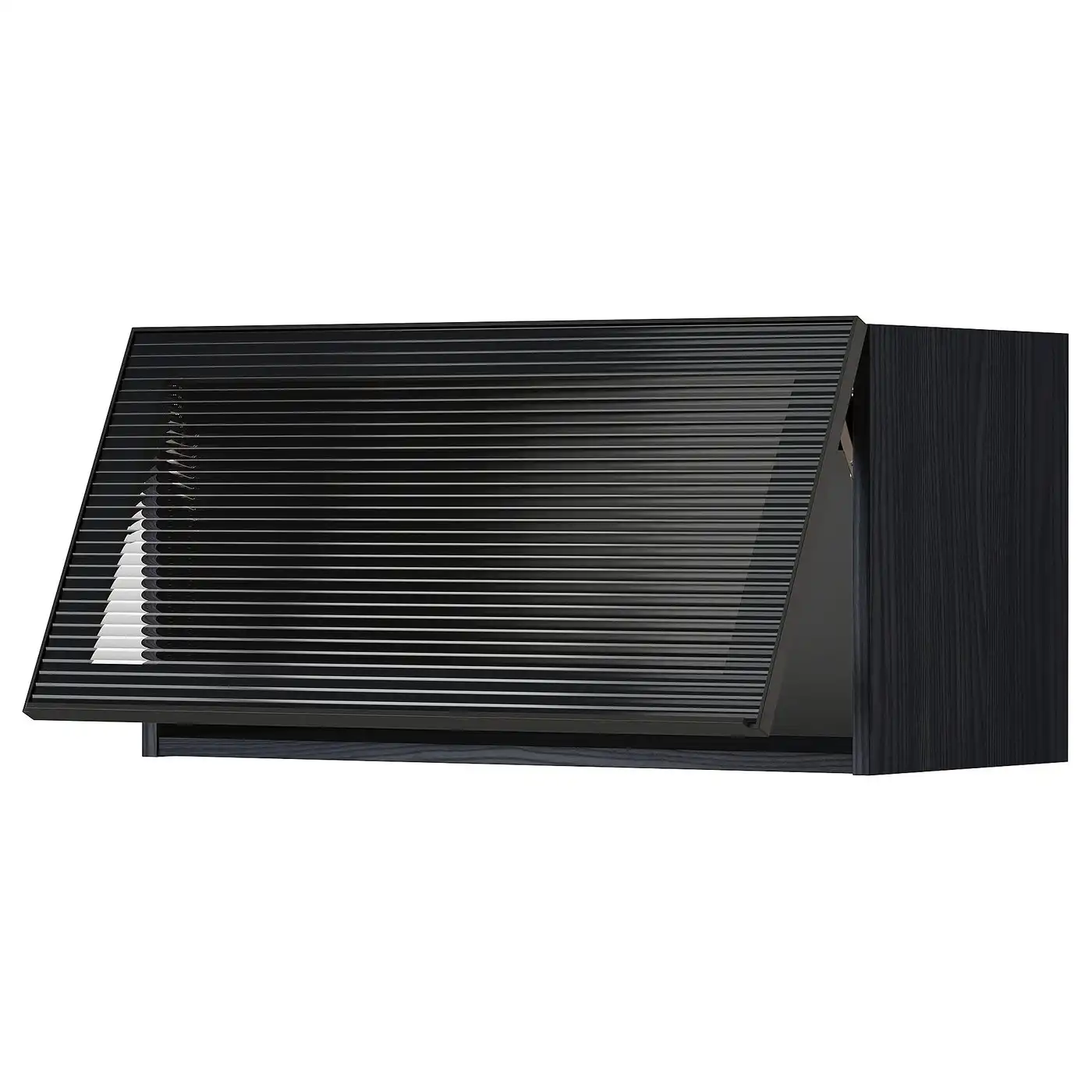 METOD Wall cab horizontal w glass door - black/Hejsta anthracite reeded glass 80x40 cm