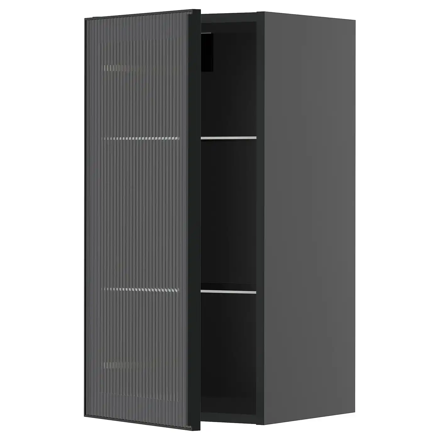 METOD Wall cabinet w shelves/glass door - black-grey/Hejsta anthracite reeded glass 40x80 cm