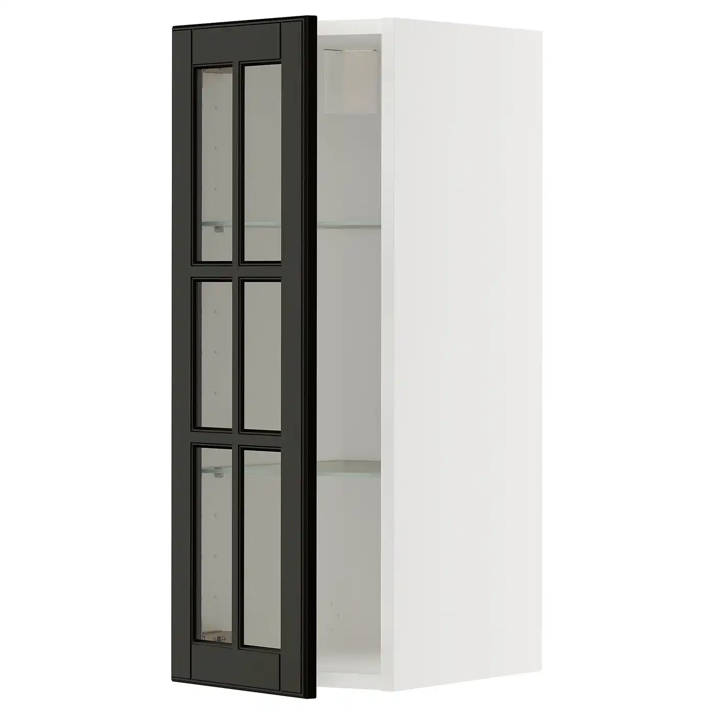 IKEA METOD Wall cabinet with shelves and glass door 30x80 cm BODBYN black/white