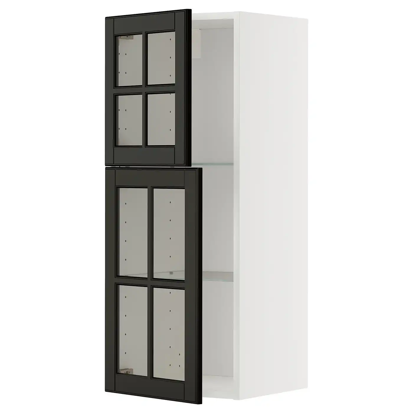 METOD Wall cabinet w shelves/glass door - white/Bodbyn black 40x100 cm