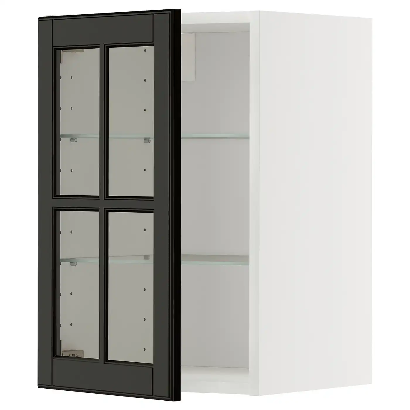 IKEA METOD Wall cabinet with shelves and glass door 40x60 cm BODBYN black/white