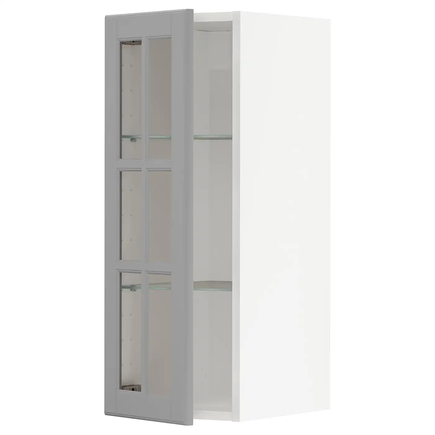 IKEA METOD Wall cabinet with shelves and glass door 30x80 cm BODBYN white/grey