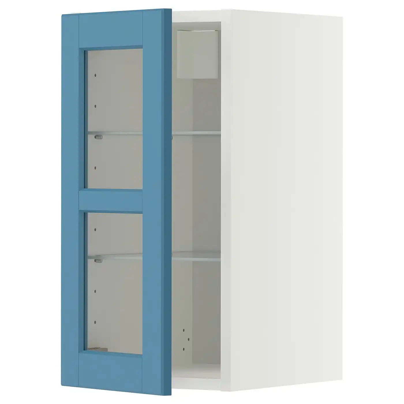 IKEA METOD Wall cabinet with shelves and glass door 30x60 cm LERHYTTAN blue/white