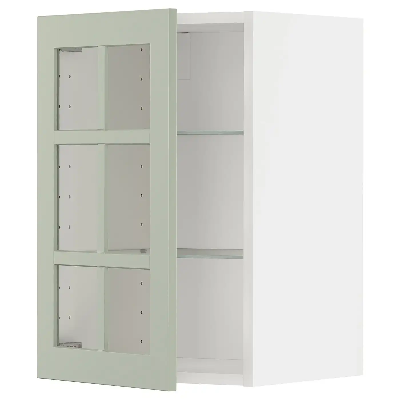 IKEA METOD Wall cabinet with shelves and glass door 40x60 cm STENSUND light green/white