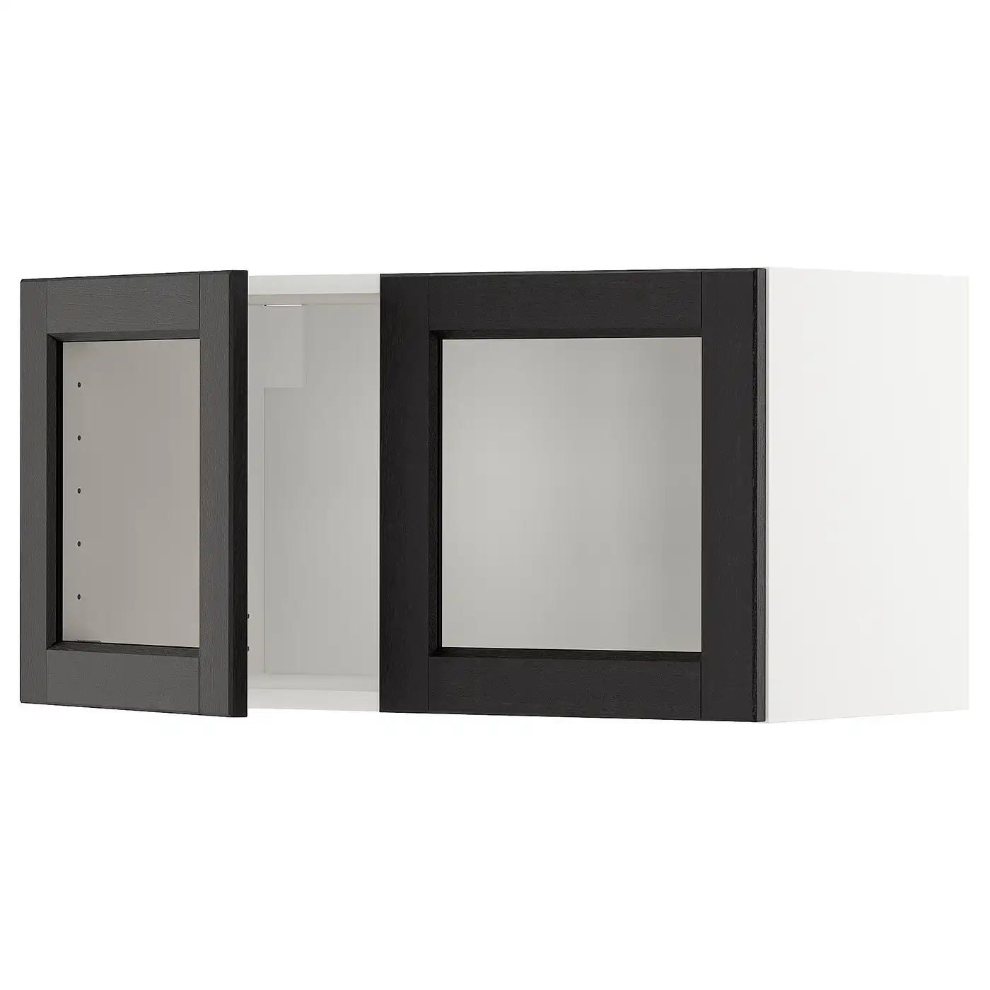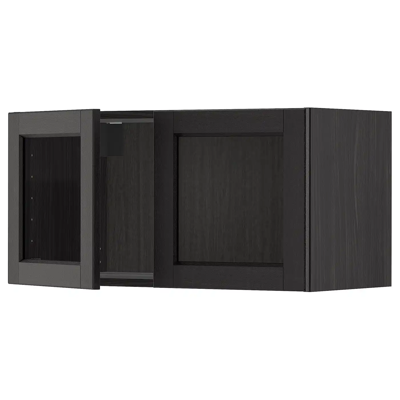 METOD Wall cabinet with 2 glass doors - black/Lerhyttan black stained 80x40 cm
