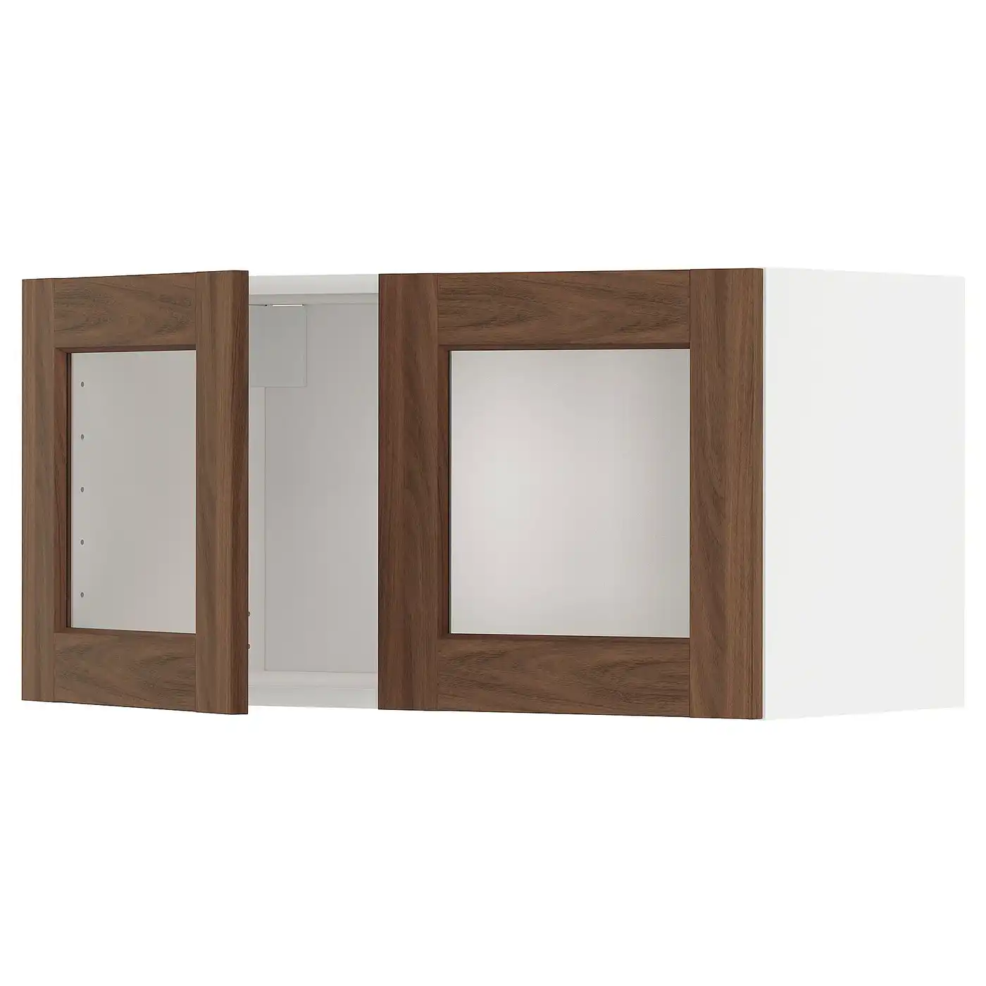 METOD Wall cabinet with 2 glass doors - white Enköping/brown walnut effect 80x40 cm