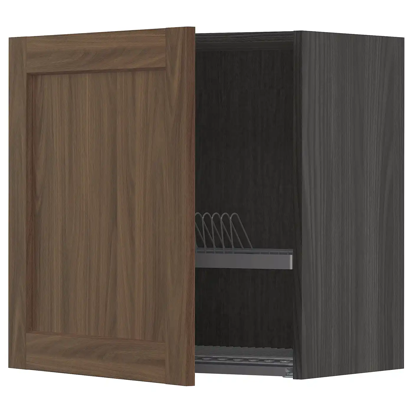METOD Wall cabinet with dish drainer - black Enköping/brown walnut effect 60x60 cm