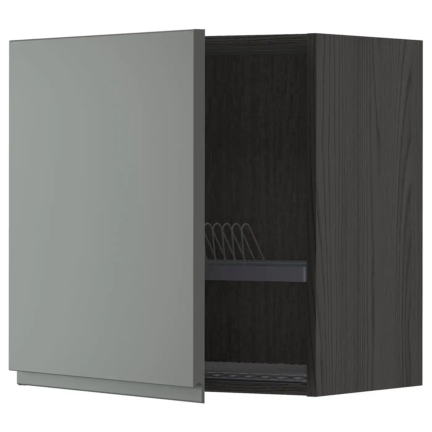 METOD Wall cabinet with dish drainer - black/Voxtorp dark grey 60x60 cm