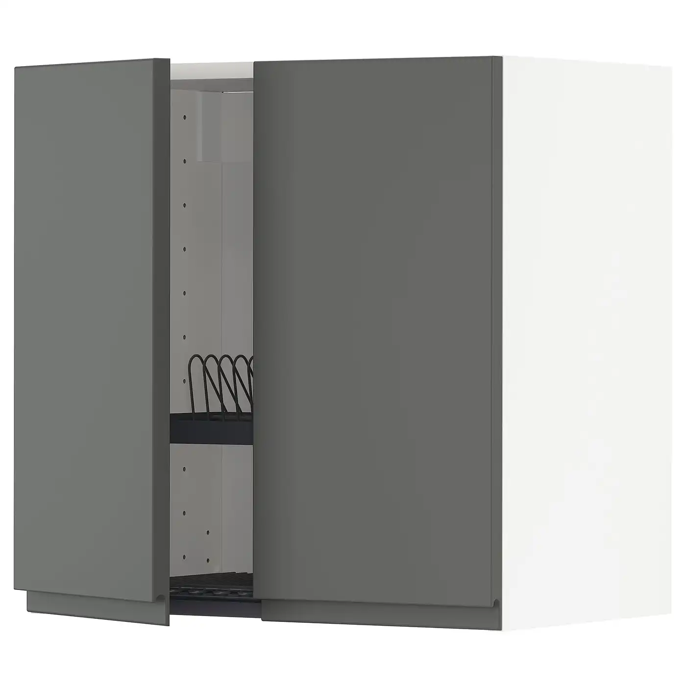 METOD Wall cabinet w dish drainer/2 doors - white/Voxtorp dark grey 60x60 cm