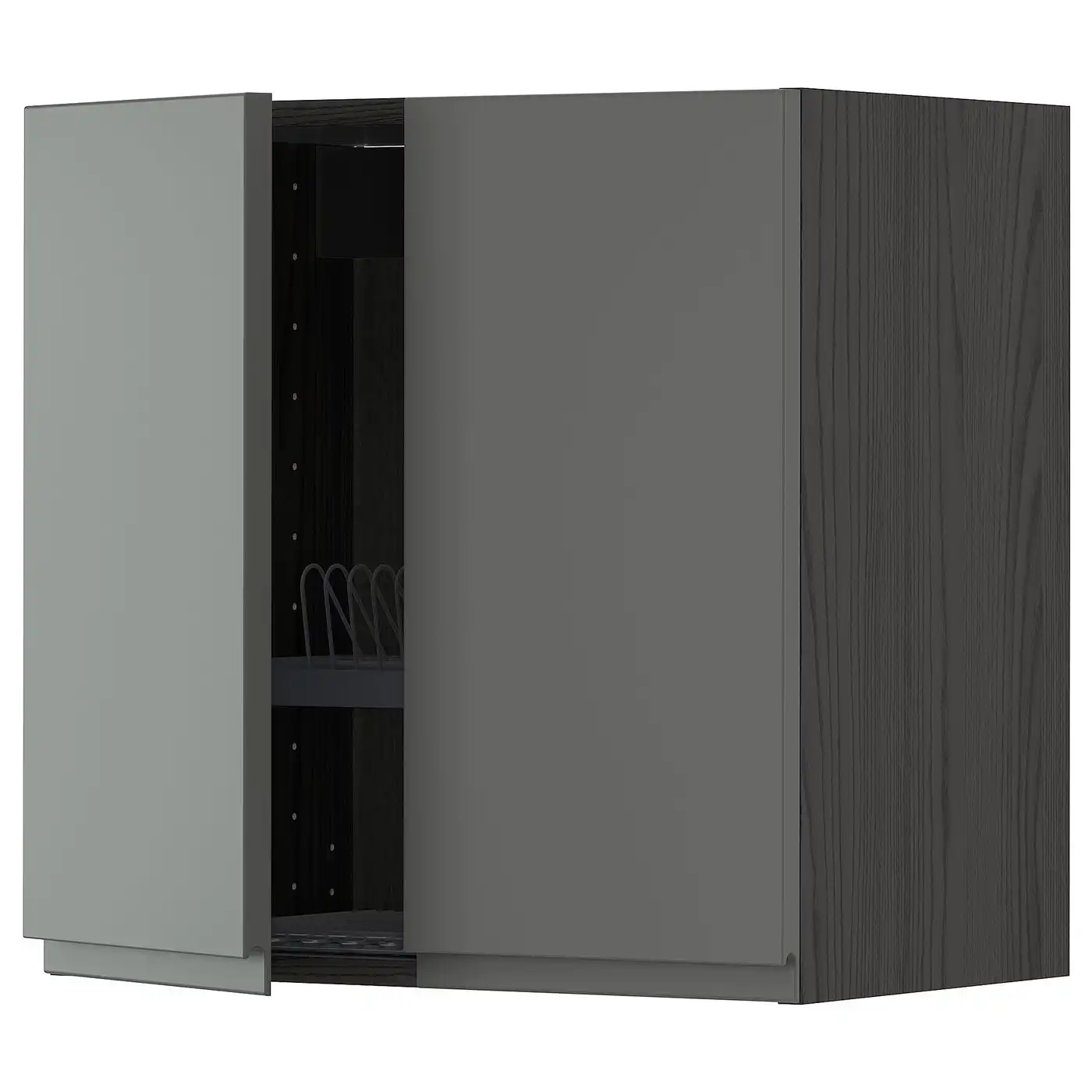 METOD Wall cabinet w dish drainer/2 doors - black/Voxtorp dark grey 60x60 cm