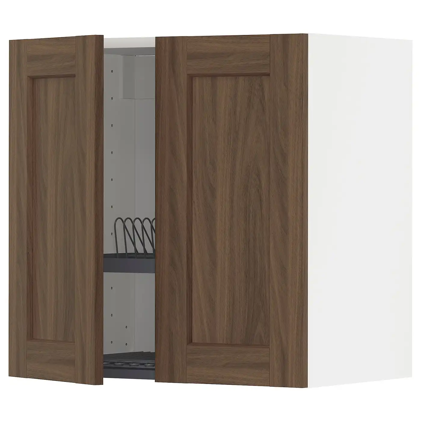 METOD Wall cabinet with dish drainer - white Enköping/brown walnut effect 60x60 cm