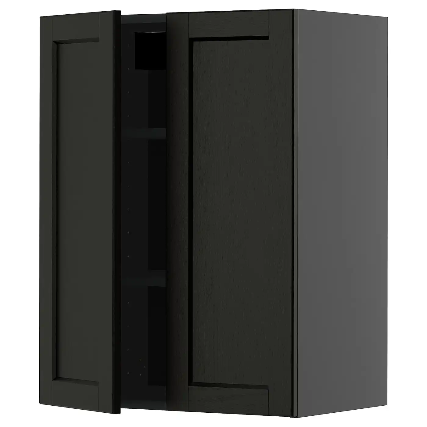 METOD Wall cabinet with shelves/2 doors - black-grey/Lerhyttan black stained 60x80 cm
