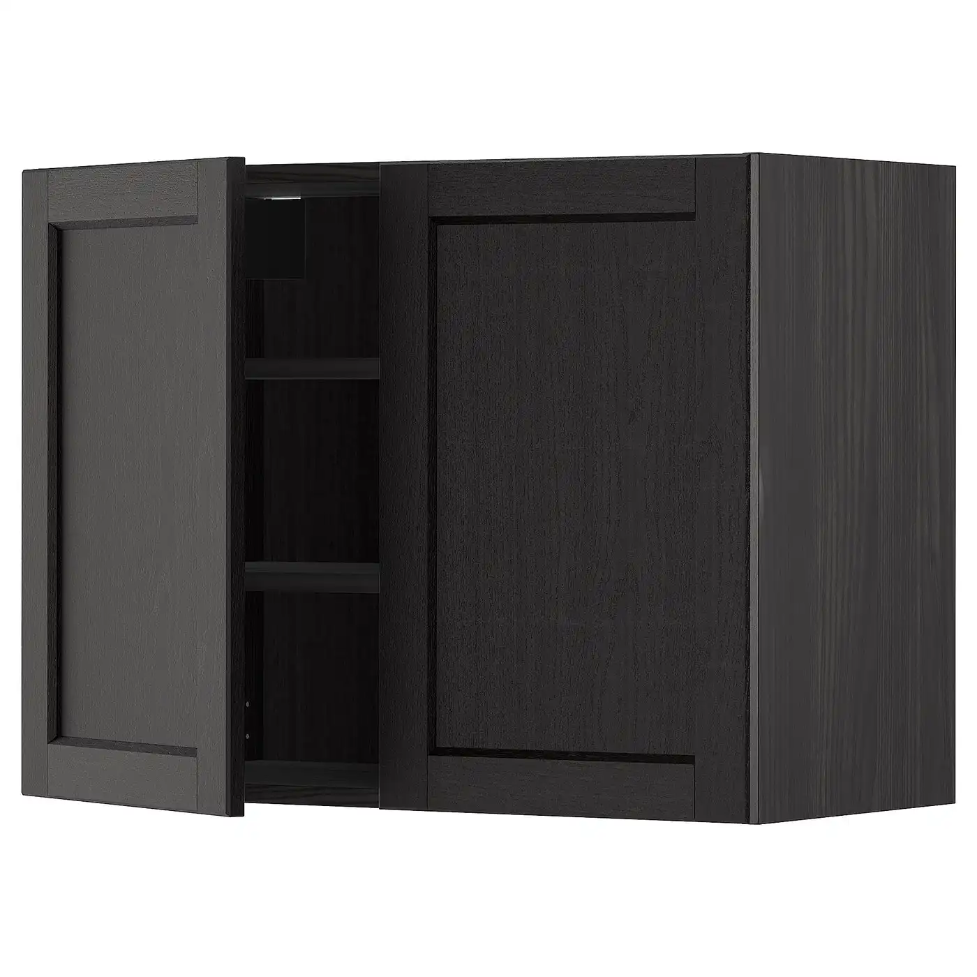 METOD Wall cabinet with shelves/2 doors - black/Lerhyttan black stained 80x60 cm