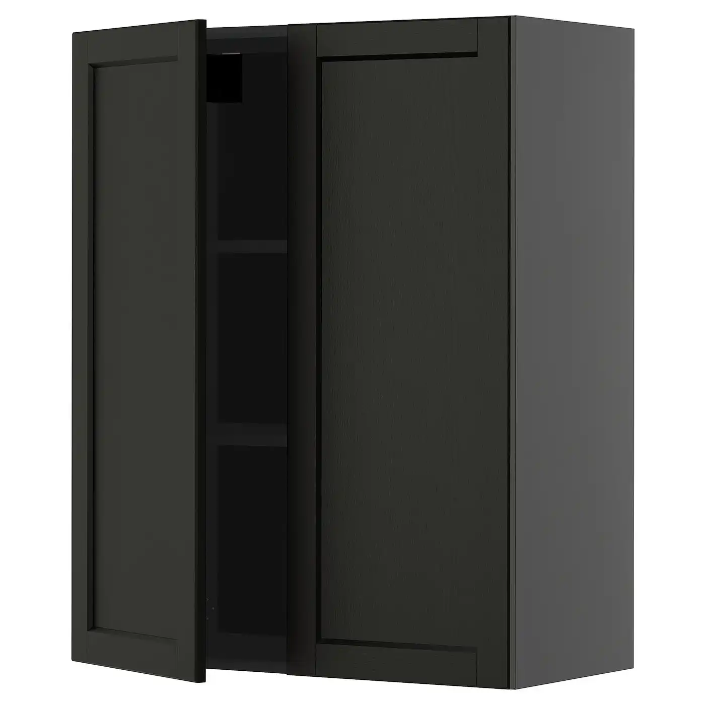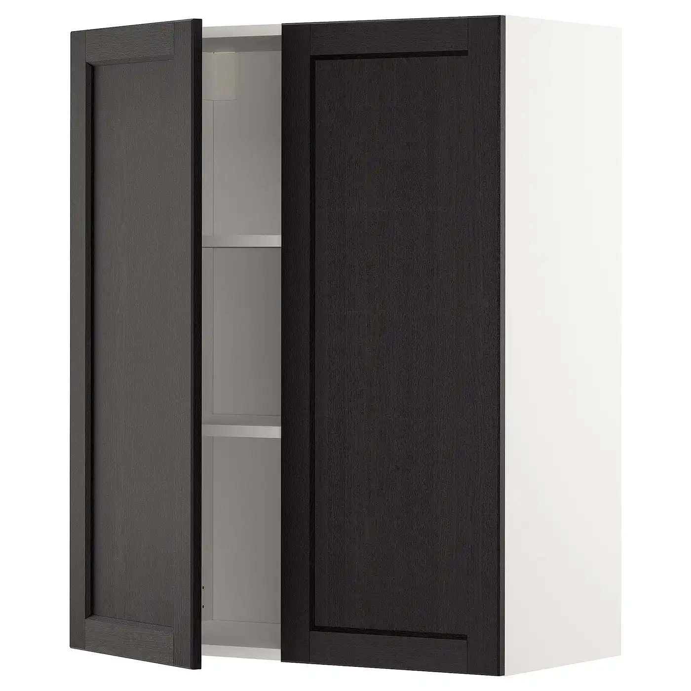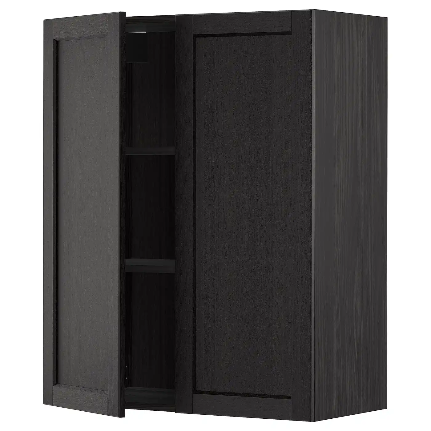 METOD Wall cabinet with shelves/2 doors - black/Lerhyttan black stained 80x100 cm