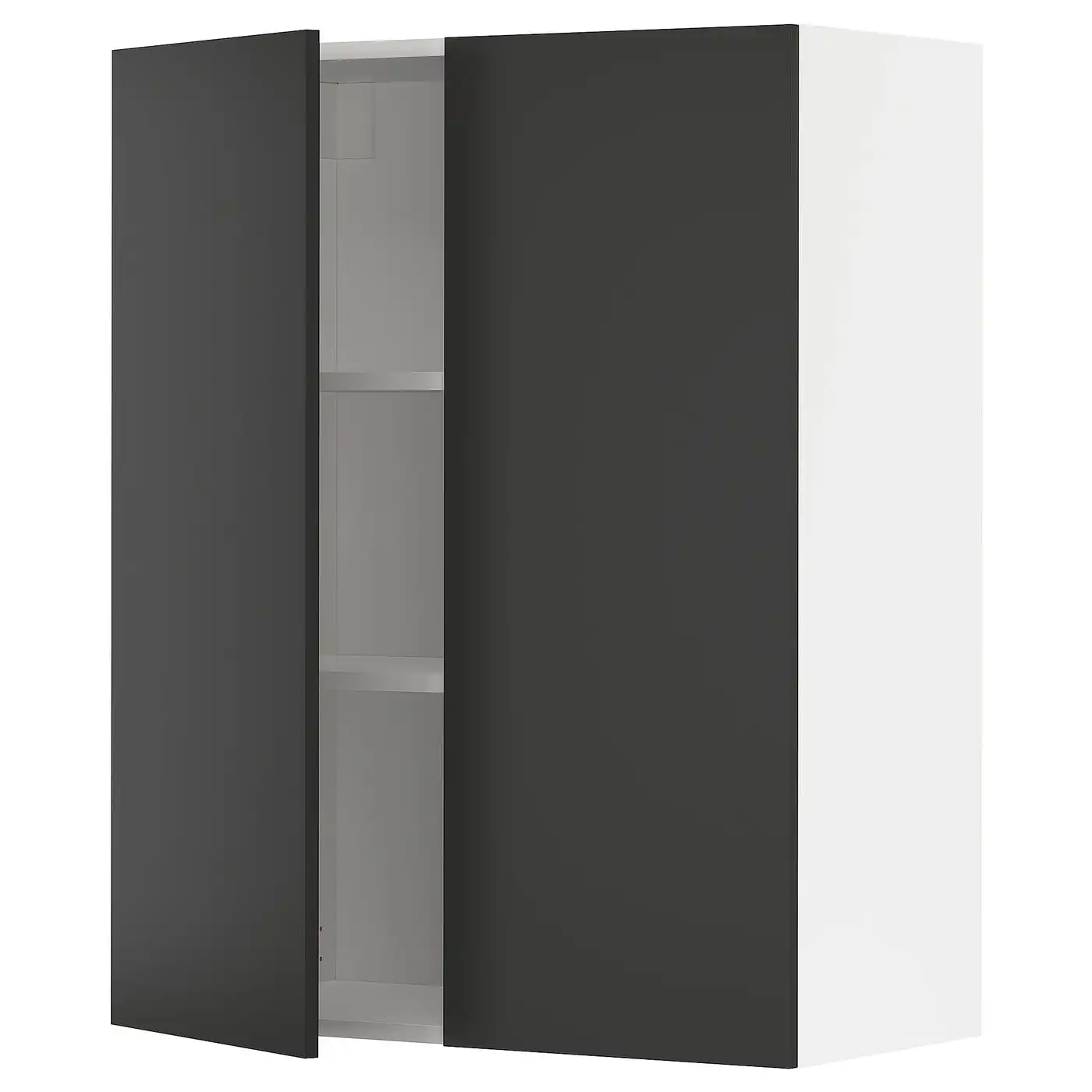 METOD Wall cabinet with shelves/2 doors - black-grey/Nickebo matt anthracite 80x100 cm