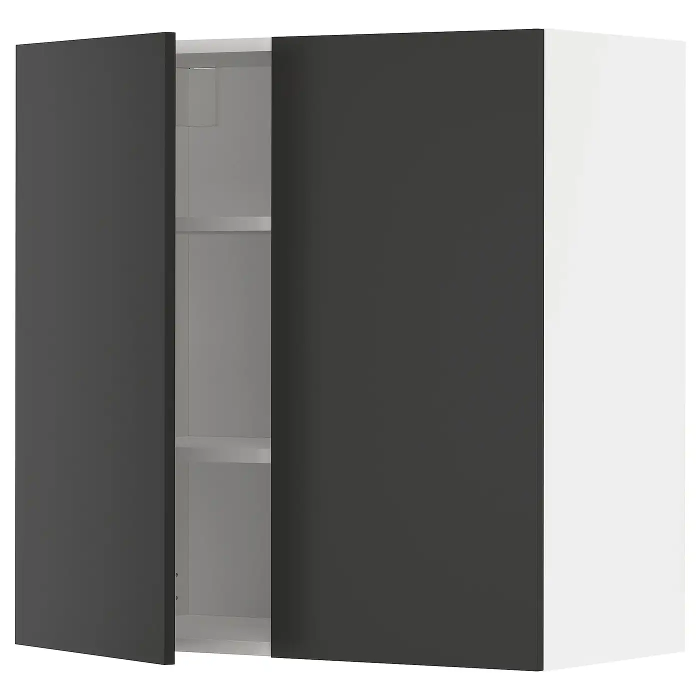 METOD Wall cabinet with shelves/2 doors - white/Nickebo matt anthracite 80x80 cm