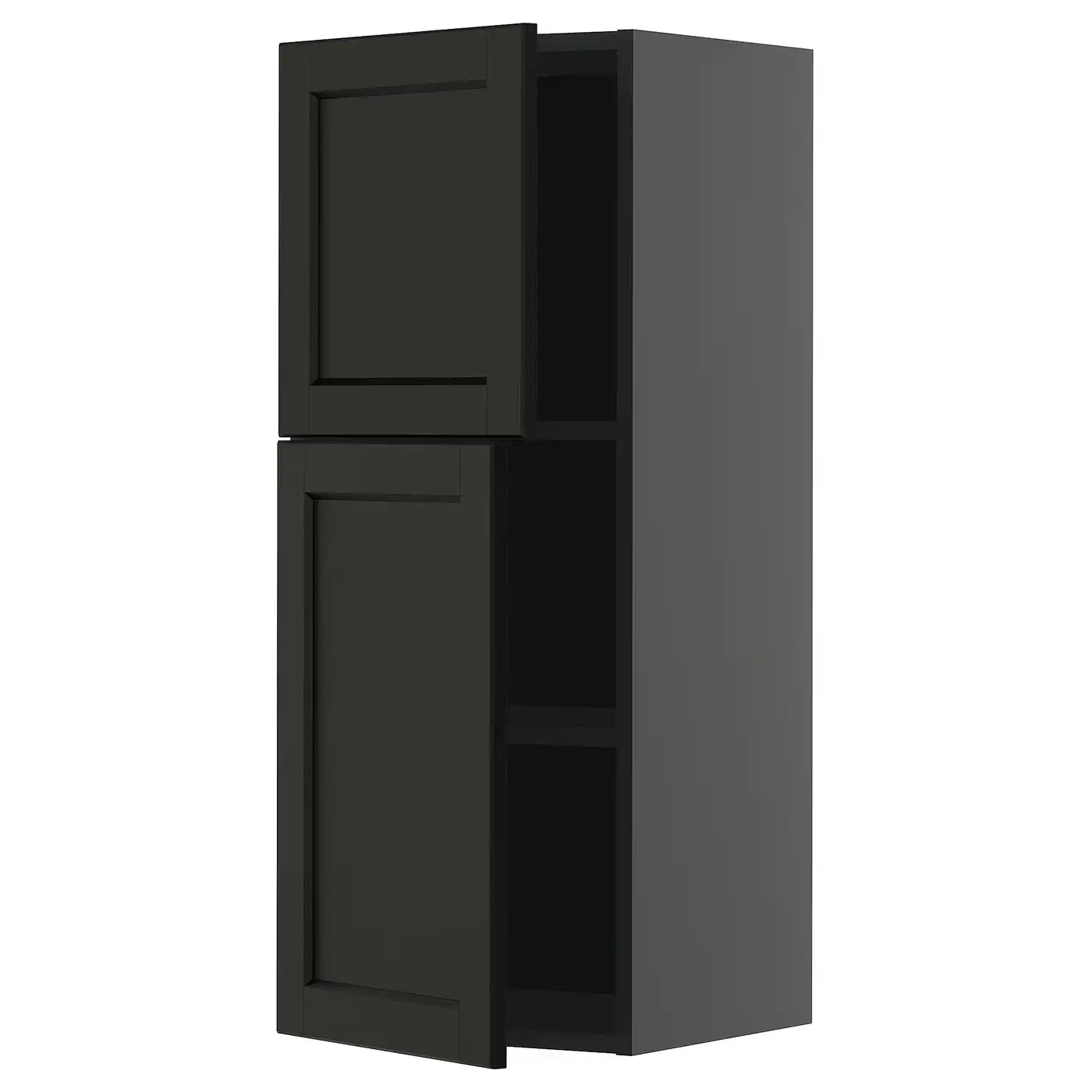 METOD Wall cabinet with shelves/2 doors - black-grey/Lerhyttan black stained 40x100 cm