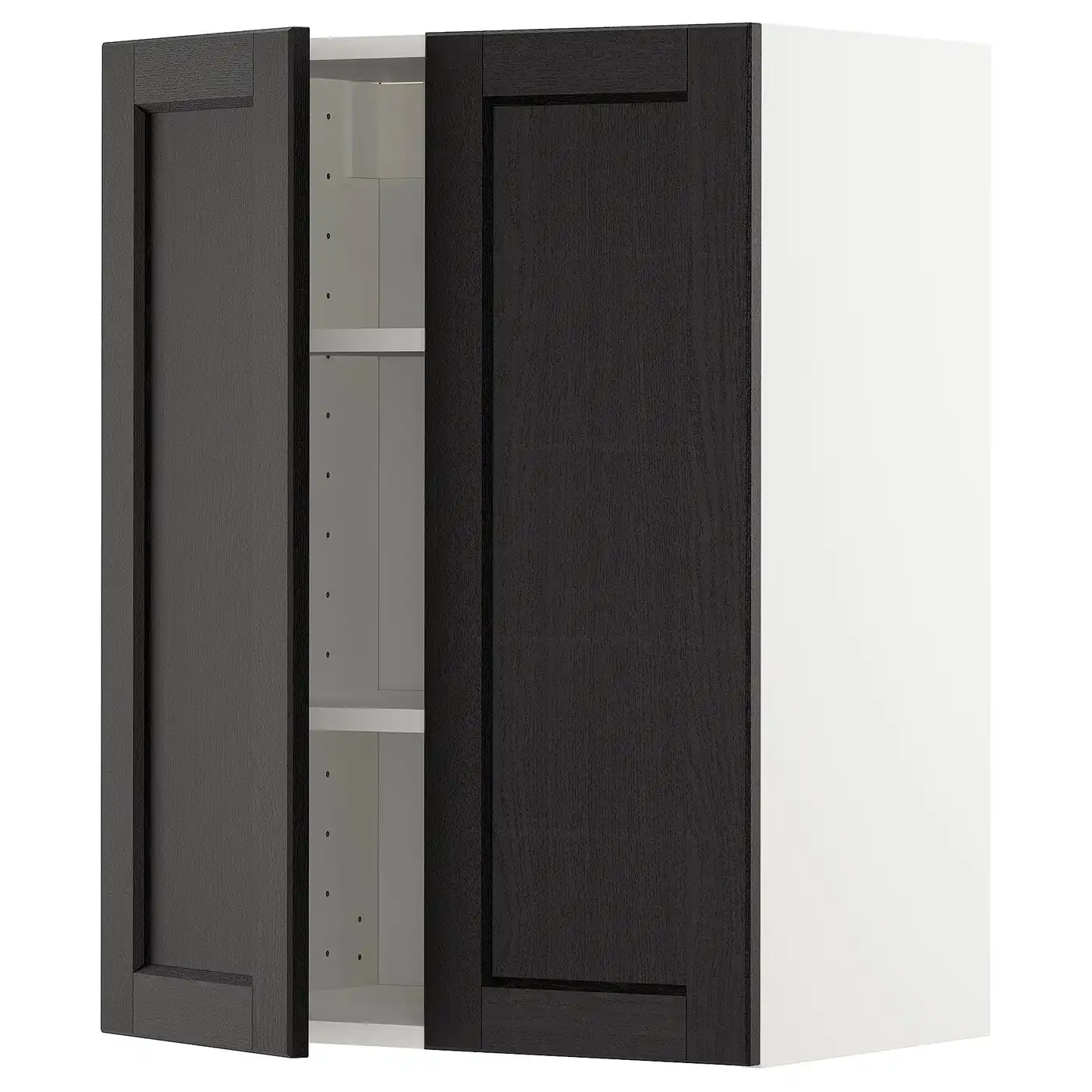 METOD Wall cabinet with shelves/2 doors - black/Lerhyttan black stained 60x80 cm