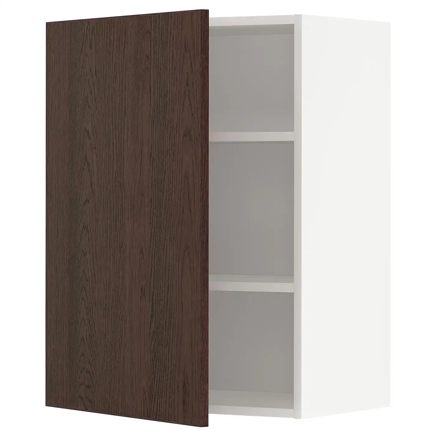 METOD Wall cabinet with shelves - white/Sinarp brown 60x80 cm