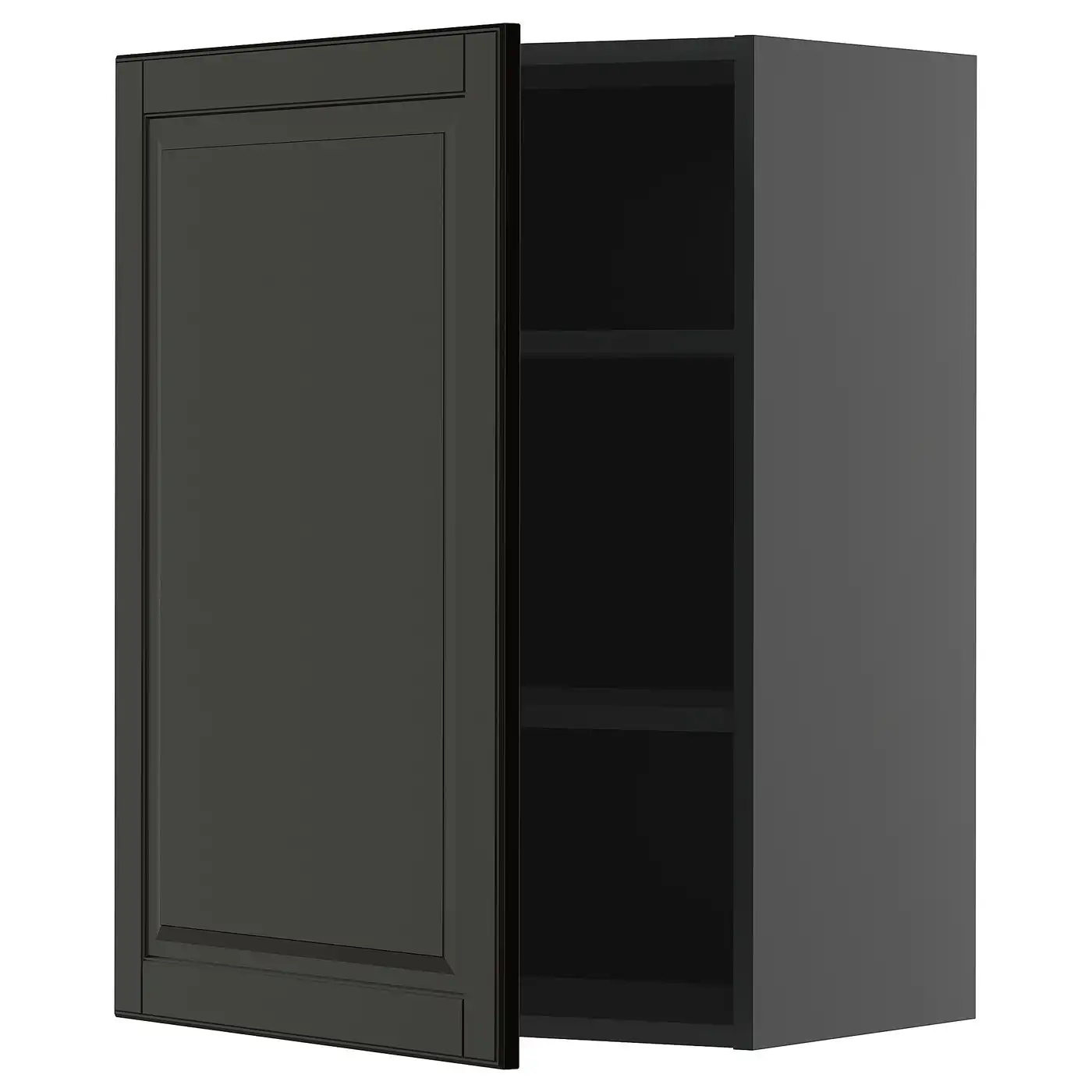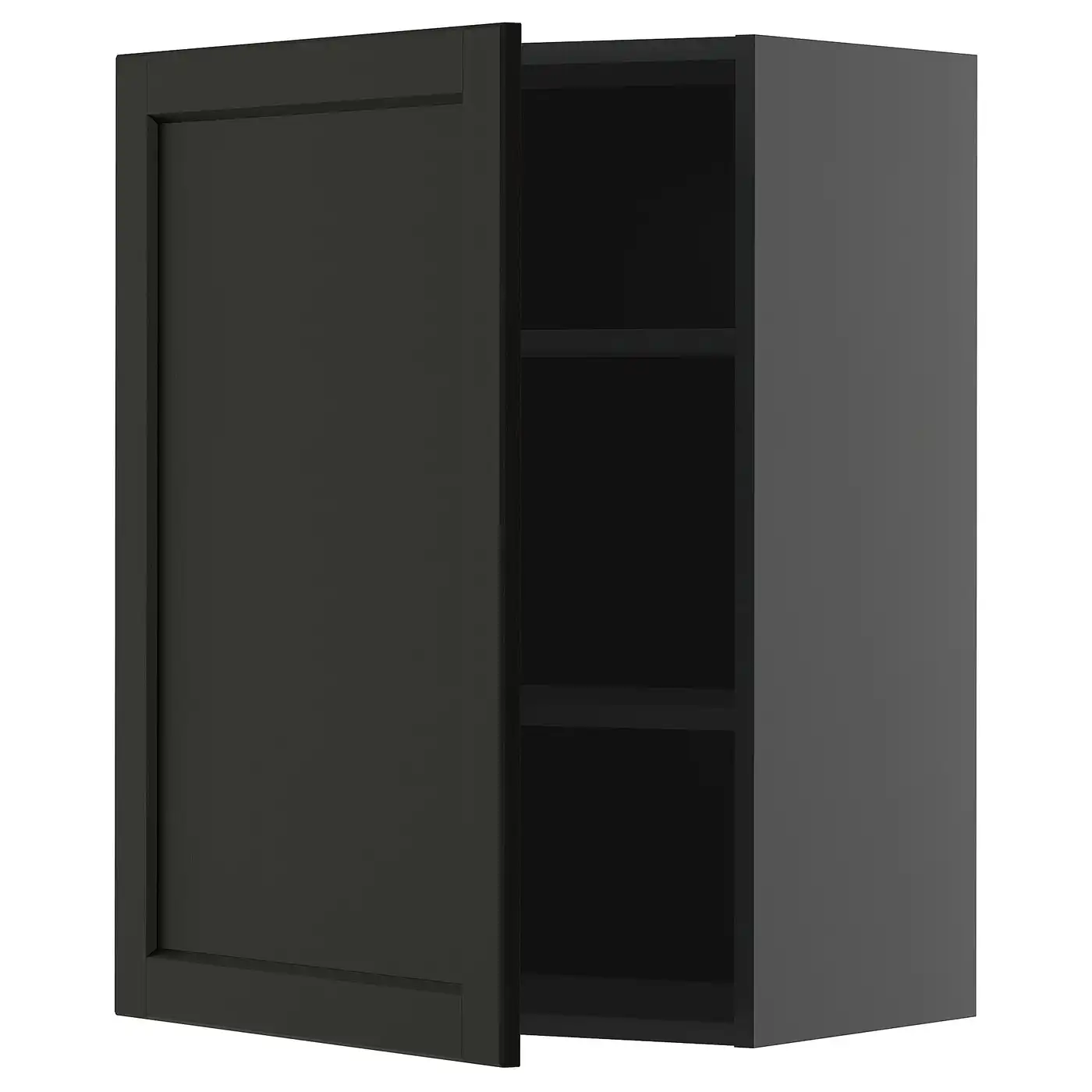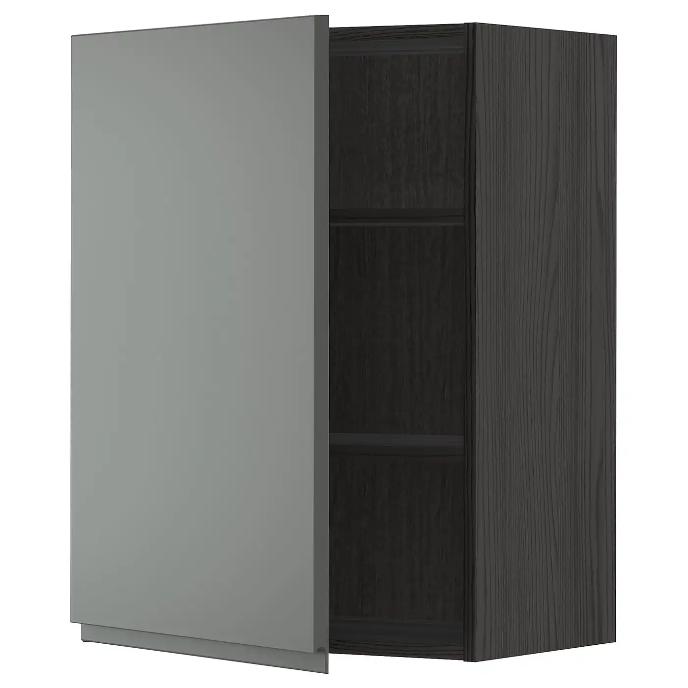 METOD Wall cabinet with shelves - black-grey/Lerhyttan black stained 60x80 cm