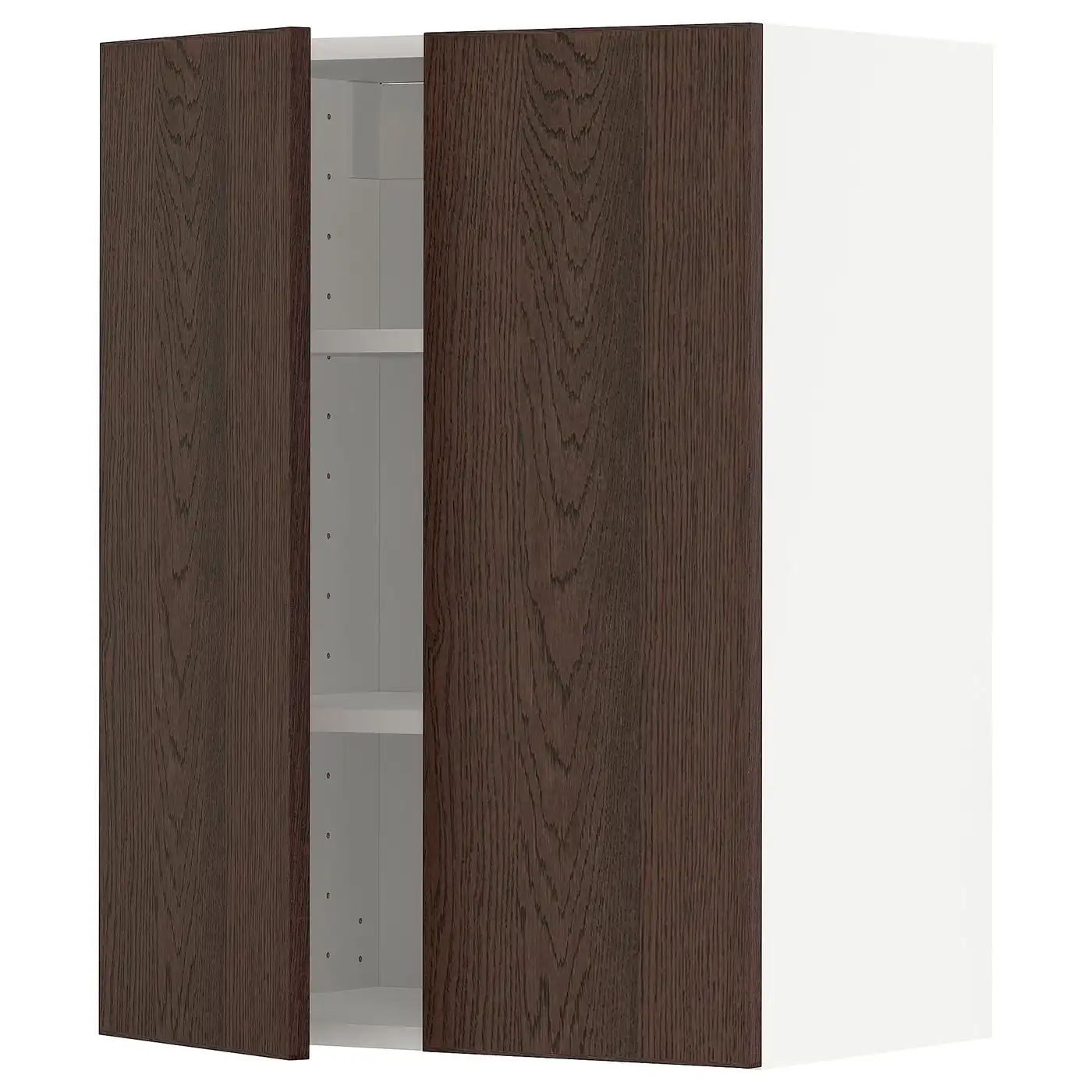 METOD Wall cabinet with shelves/2 doors - white/Sinarp brown 60x80 cm