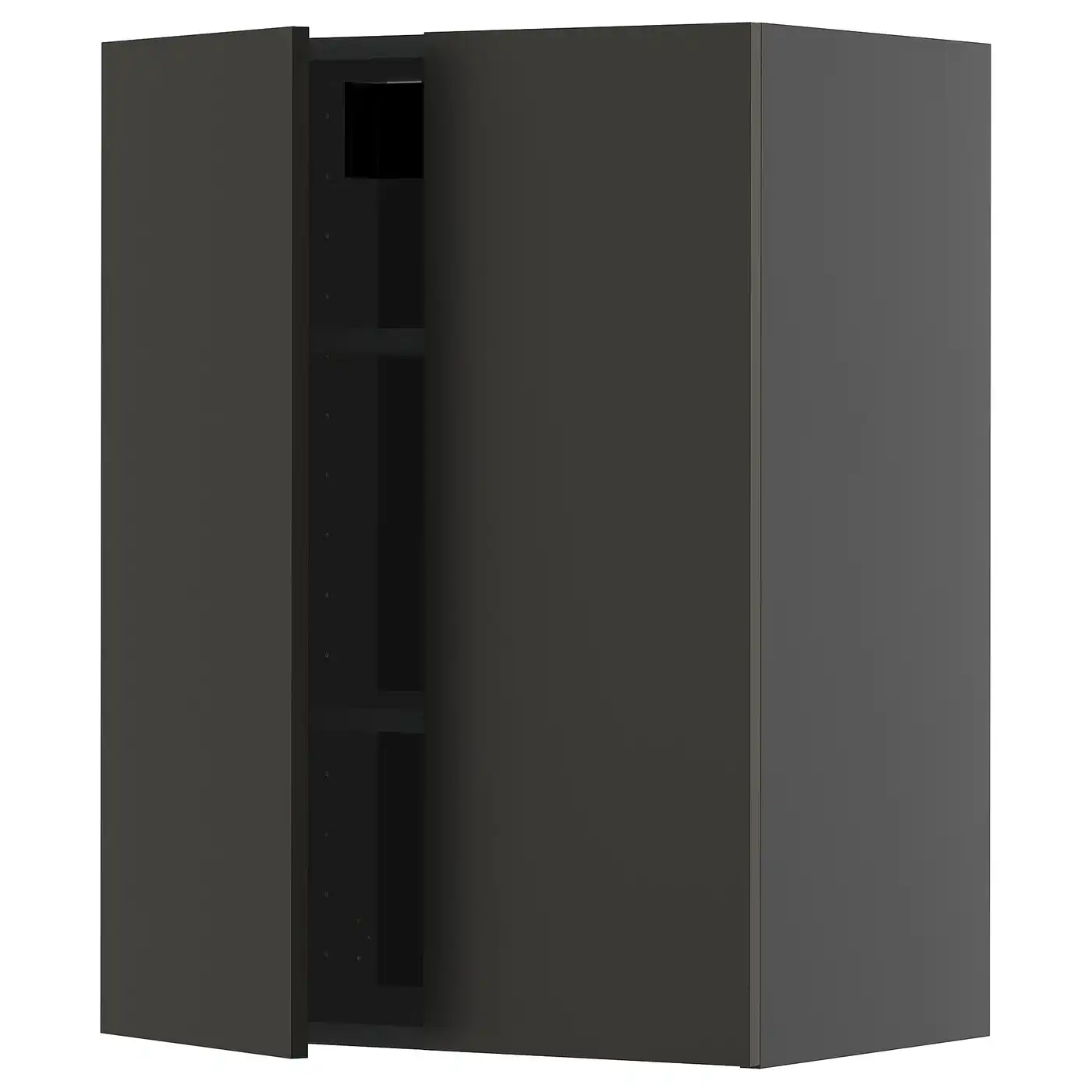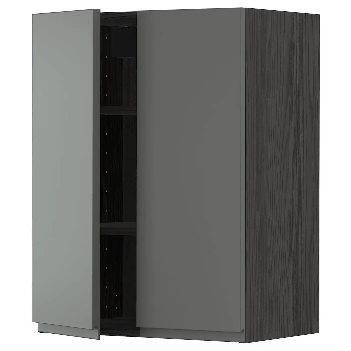 METOD Wall cabinet with shelves/2 doors - black/Voxtorp dark grey 60x80 cm