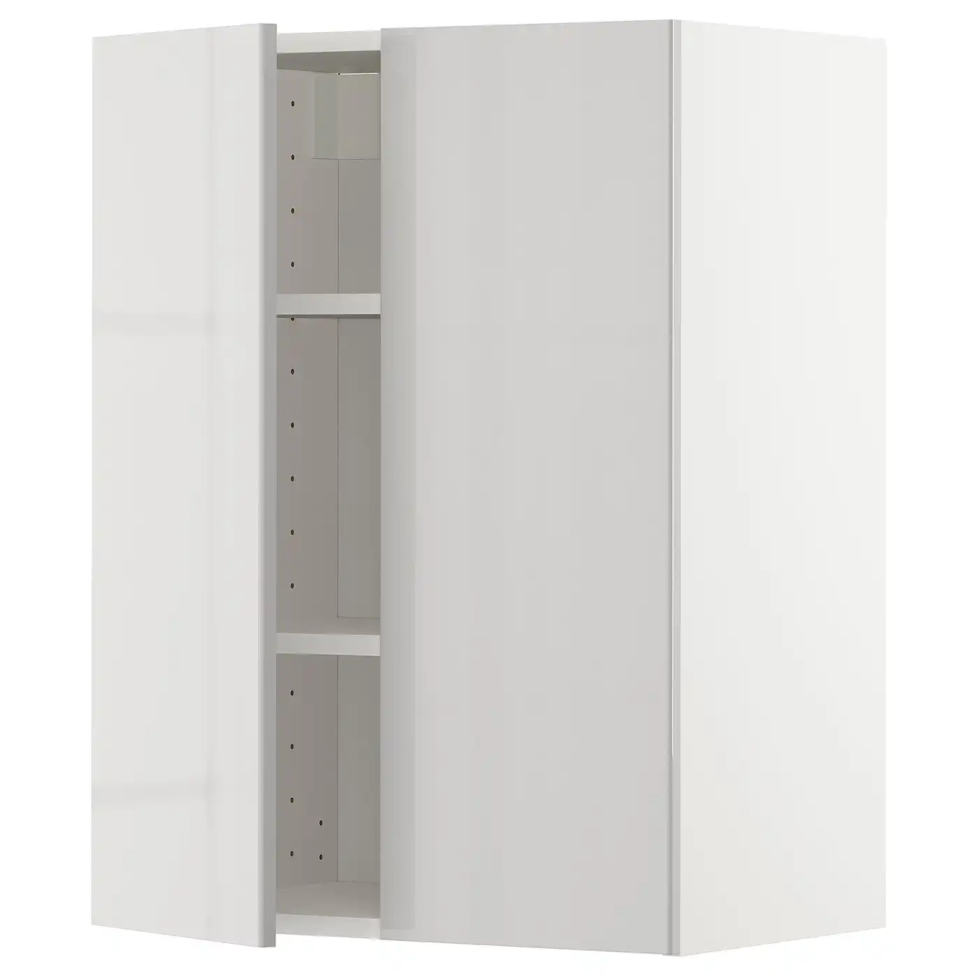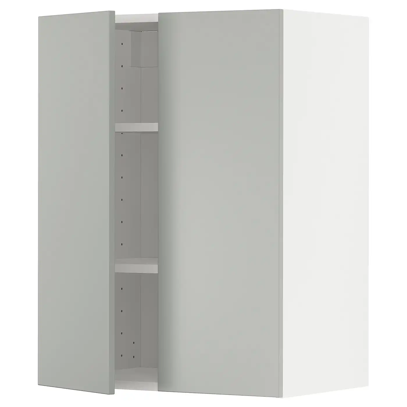METOD Wall cabinet with shelves/2 doors - white/Ringhult light grey 60x80 cm