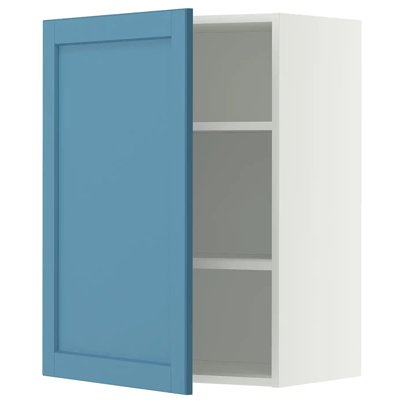 METOD Wall cabinet with shelves - white/Lerhyttan blue 60x80 cm