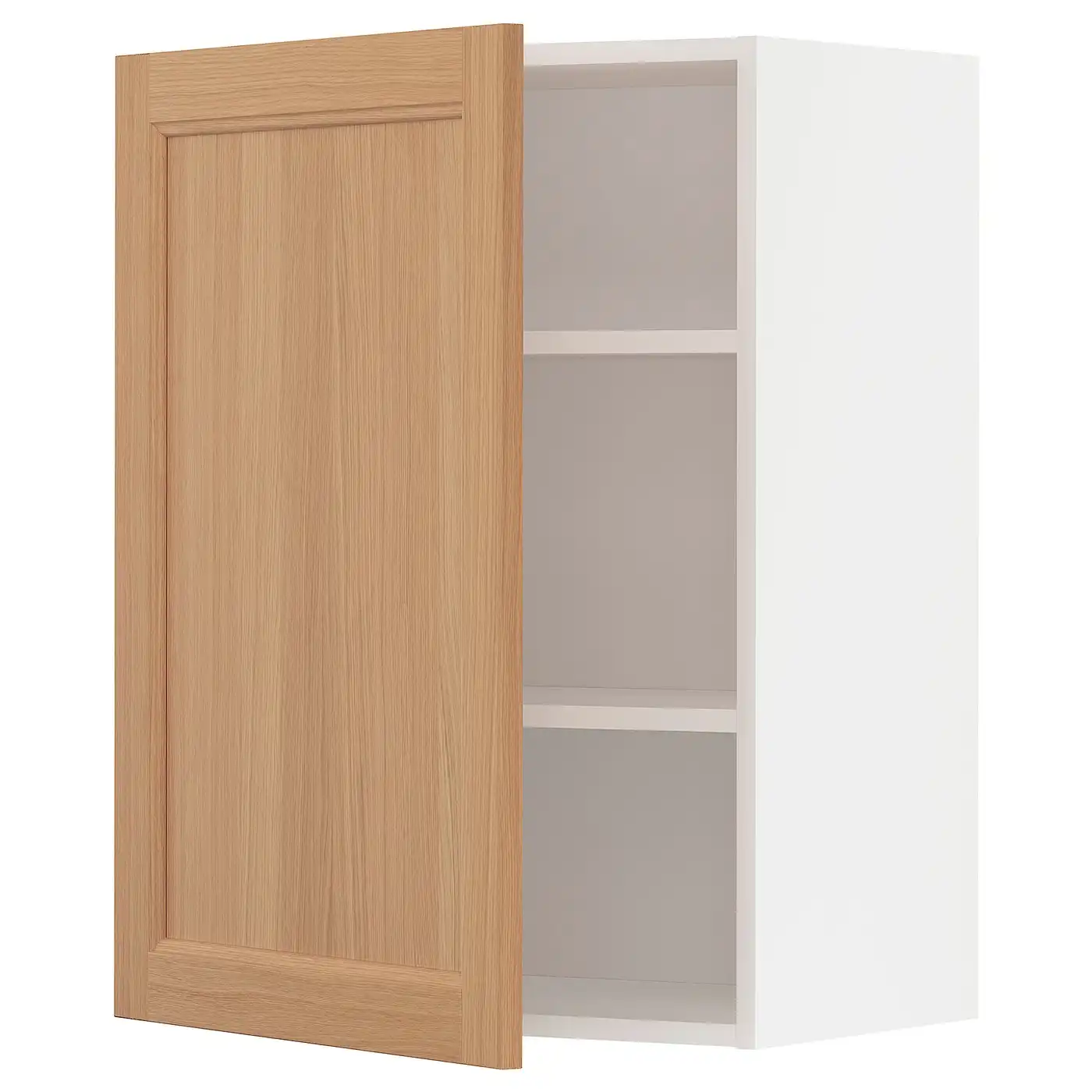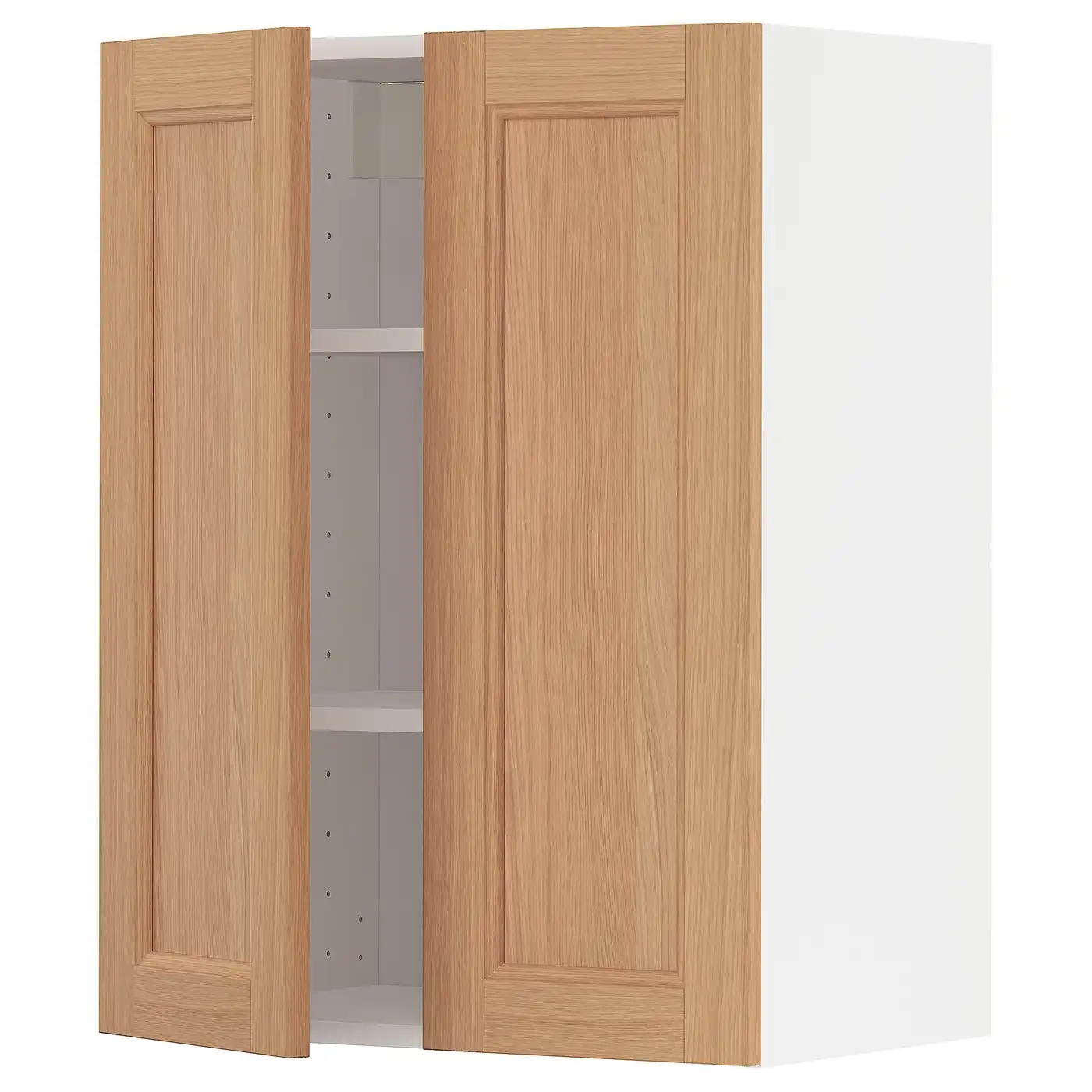 METOD Wall cabinet with shelves/2 doors - white/Voxtorp oak effect 60x80 cm
