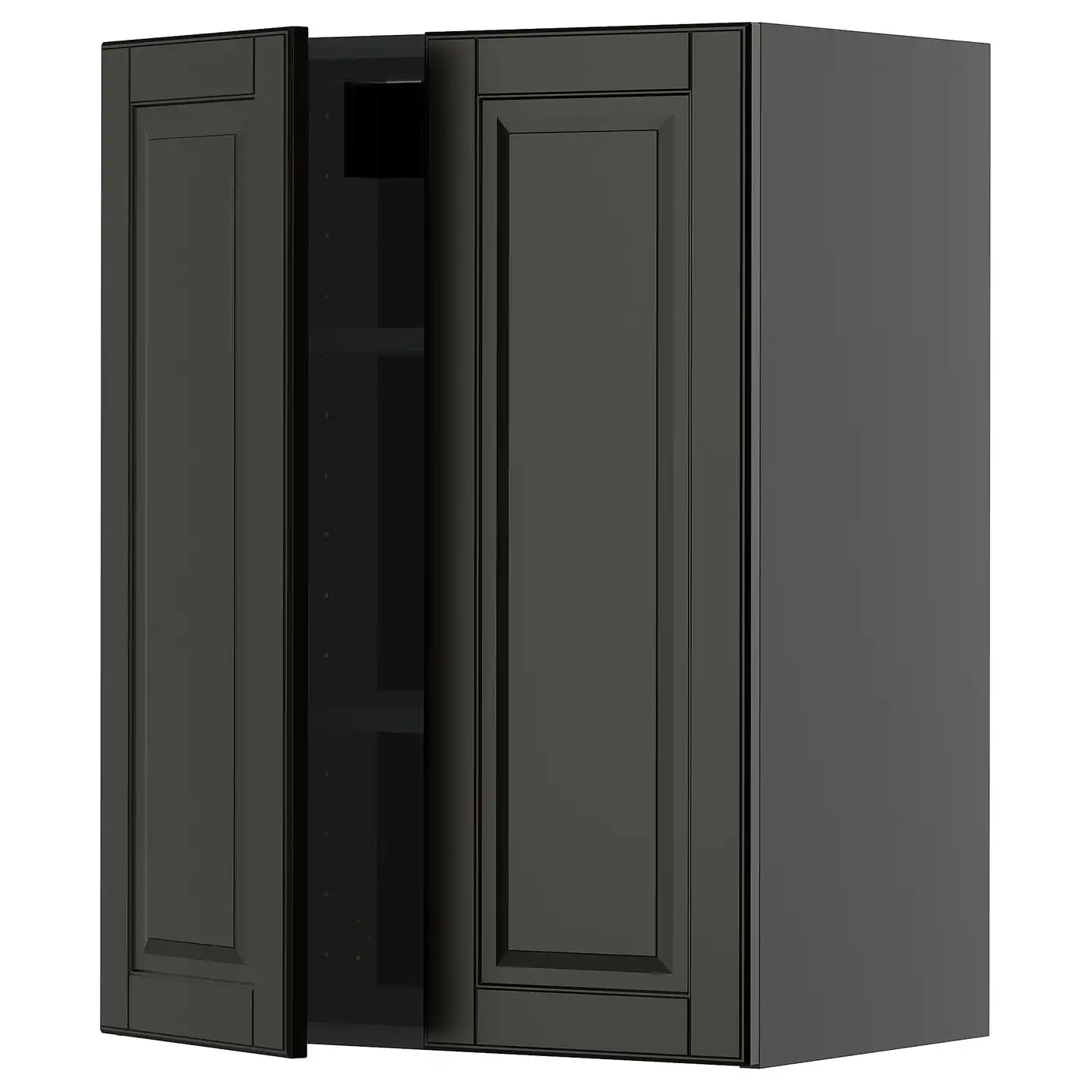METOD Wall cabinet with shelves/2 doors - black-grey/Bodbyn black 60x80 cm