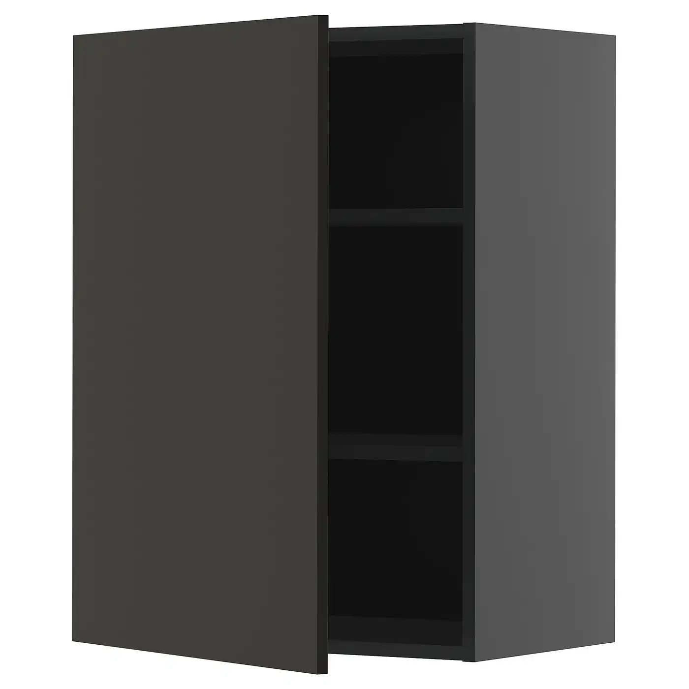 METOD Wall cabinet with shelves/2 doors - black-grey/Nickebo matt anthracite 60x80 cm
