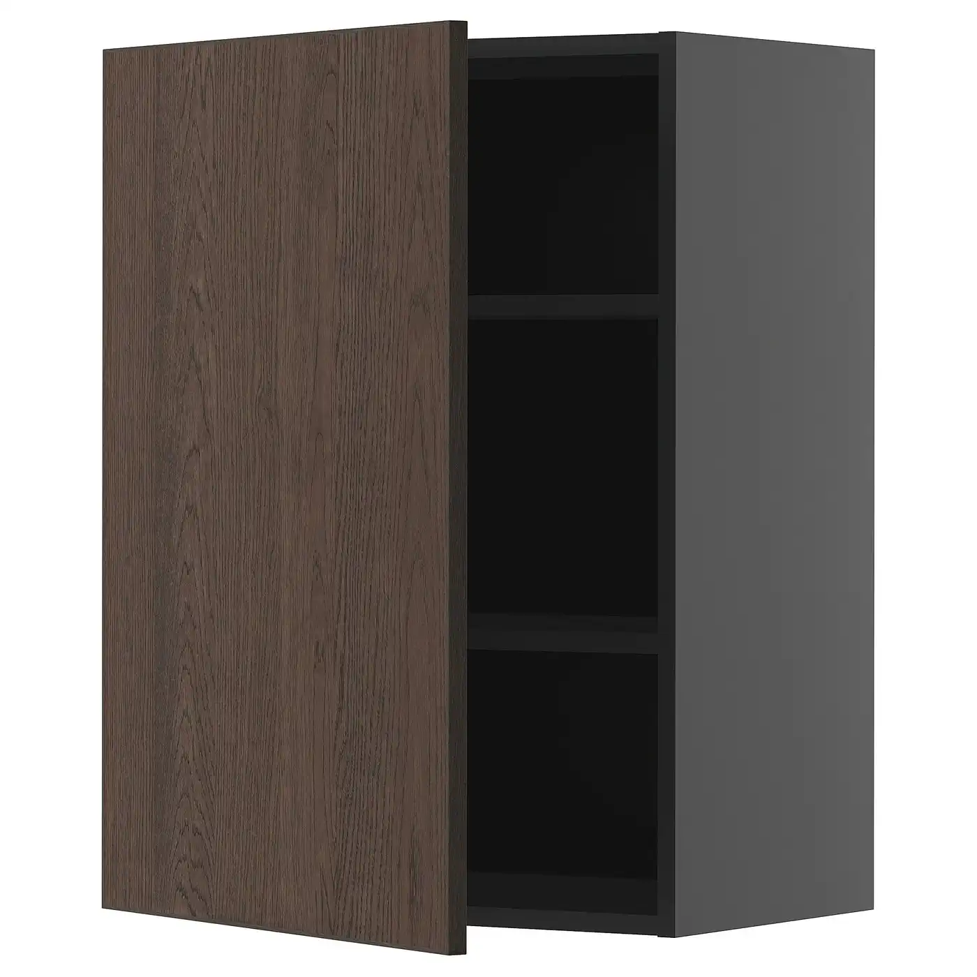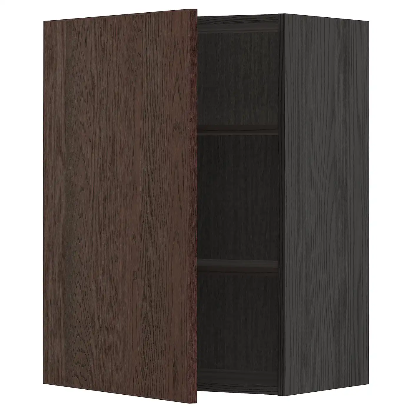 METOD Wall cabinet with shelves - black/Sinarp brown 60x80 cm