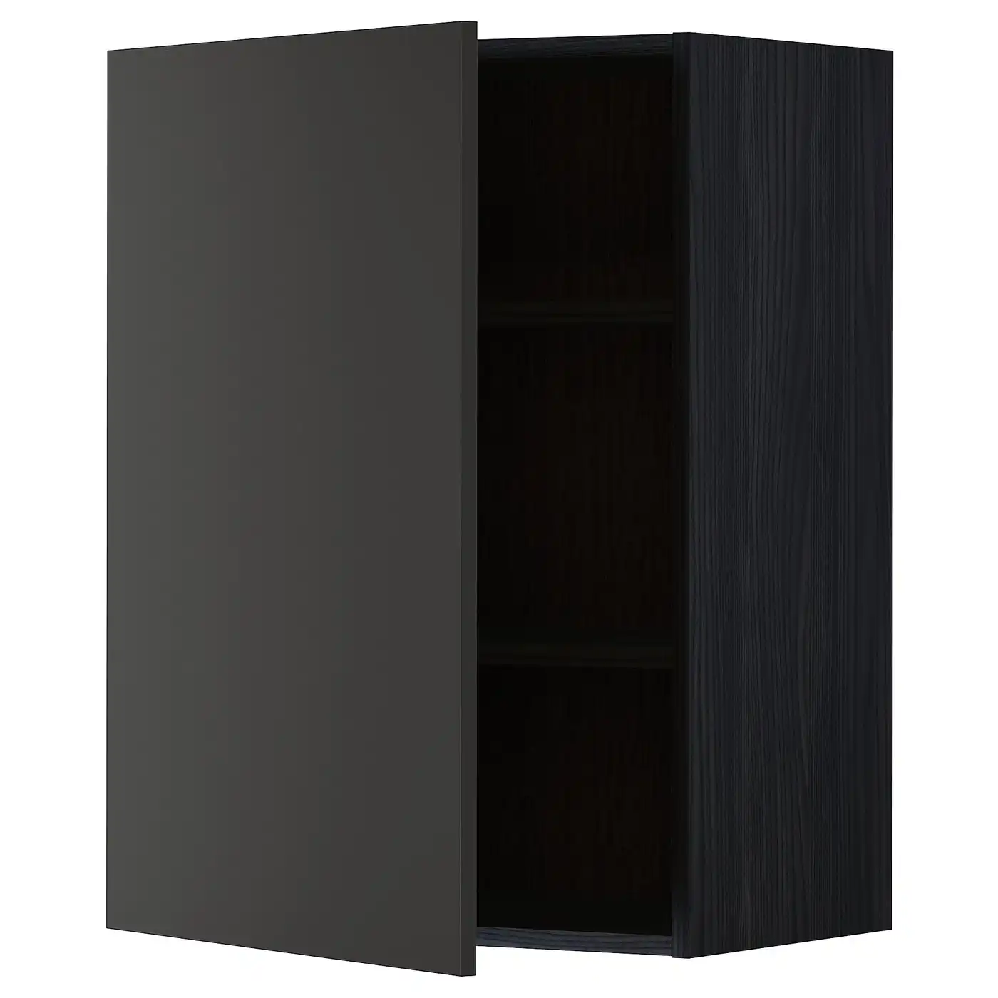 METOD Wall cabinet with shelves - black/Nickebo matt anthracite 60x80 cm